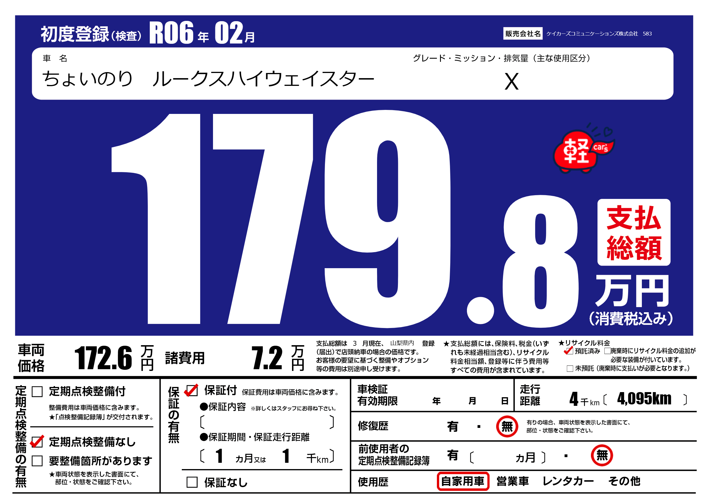 | 定期点検整備 | 定期点検整備なし | ||