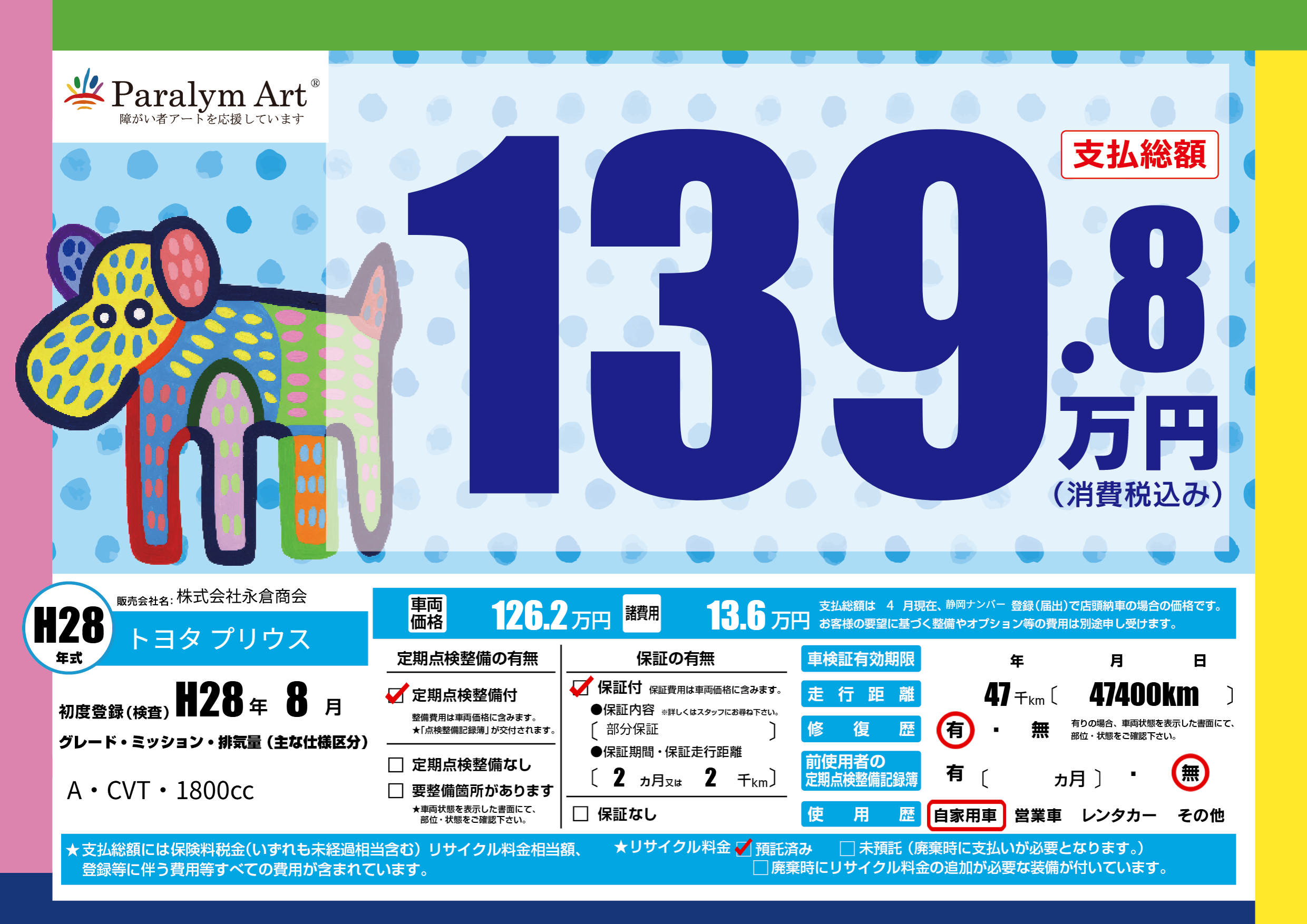 | 走行キロ | 4.7万km | 初年度登録 | H28年8月 |