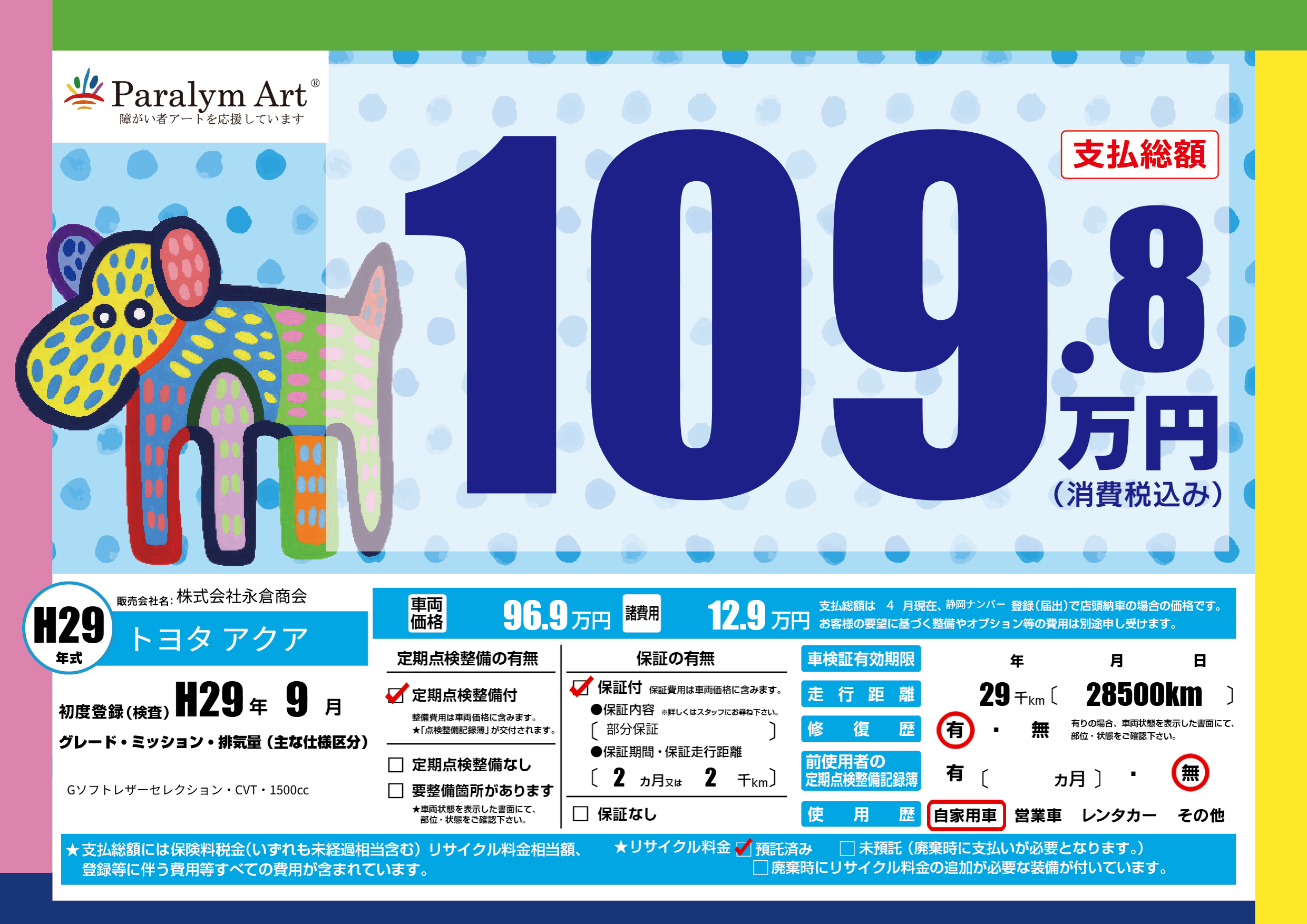 | 走行キロ | 2.9万km | 初年度登録 | H29年9月 |