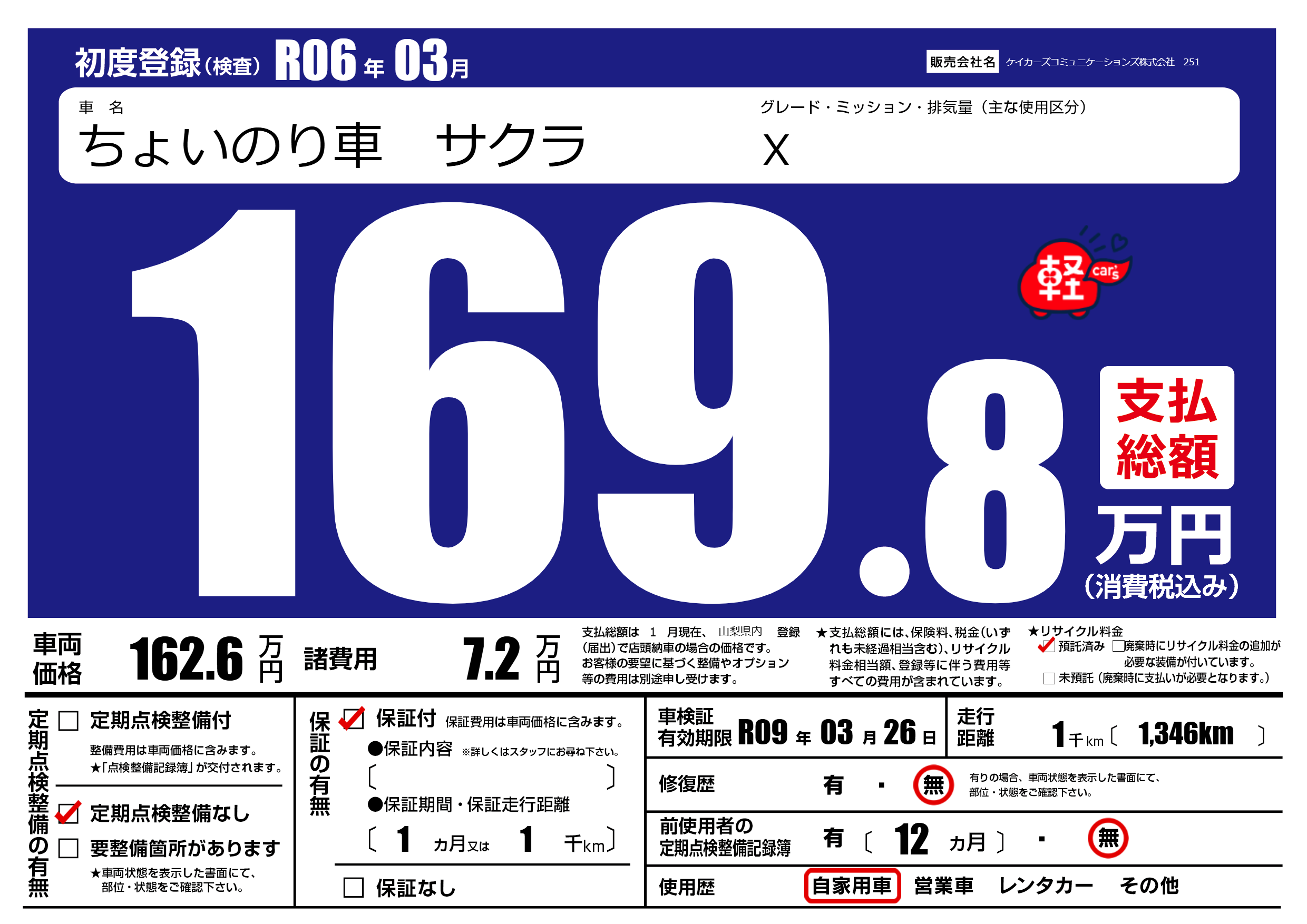 | 車名 | ちょいのり車 サクラ | グレード ミッション 排気量 |