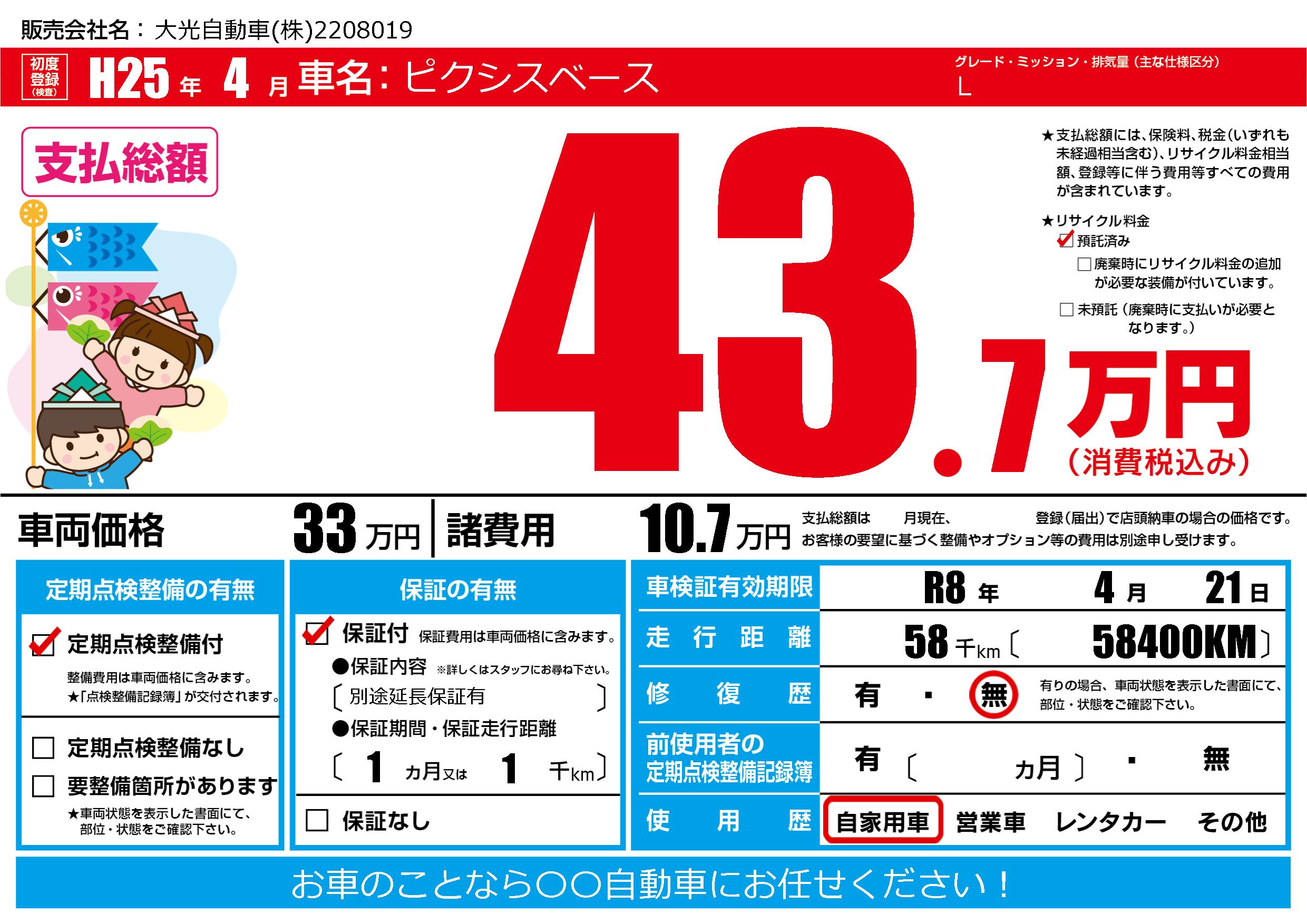 | 車名 | ピクシスベース | グレード ミッション 排気量 |