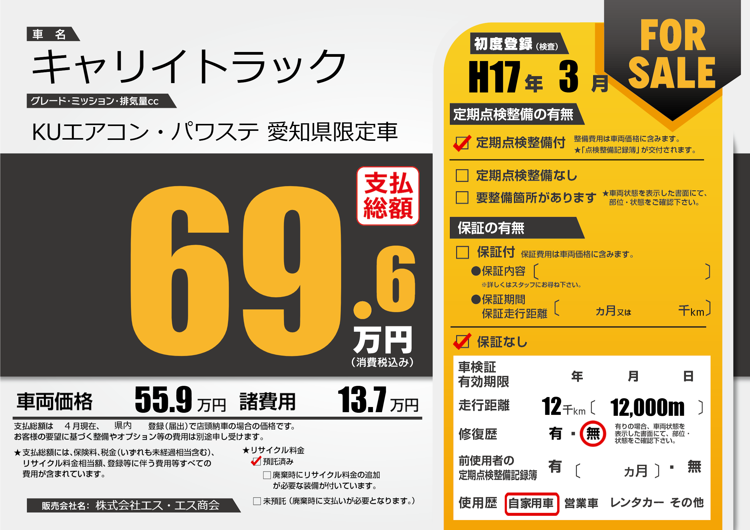 | 定期点検整備 | 定期点検整備あり | ||