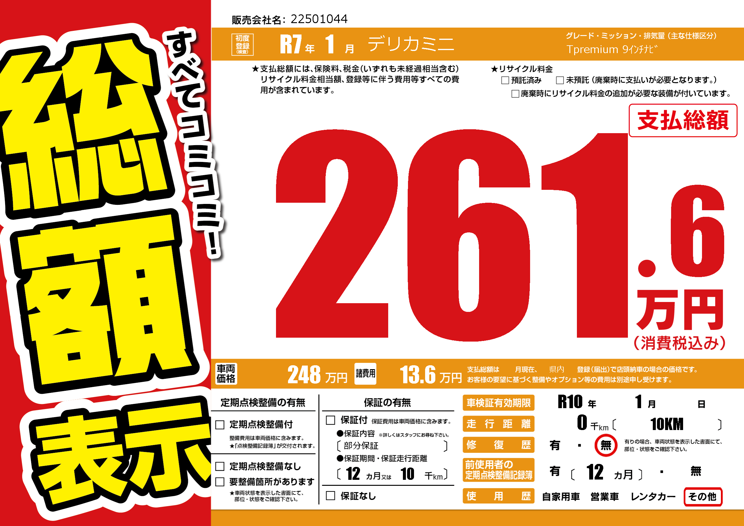 | 車検制限 | R10年 1月 - 日 | ||