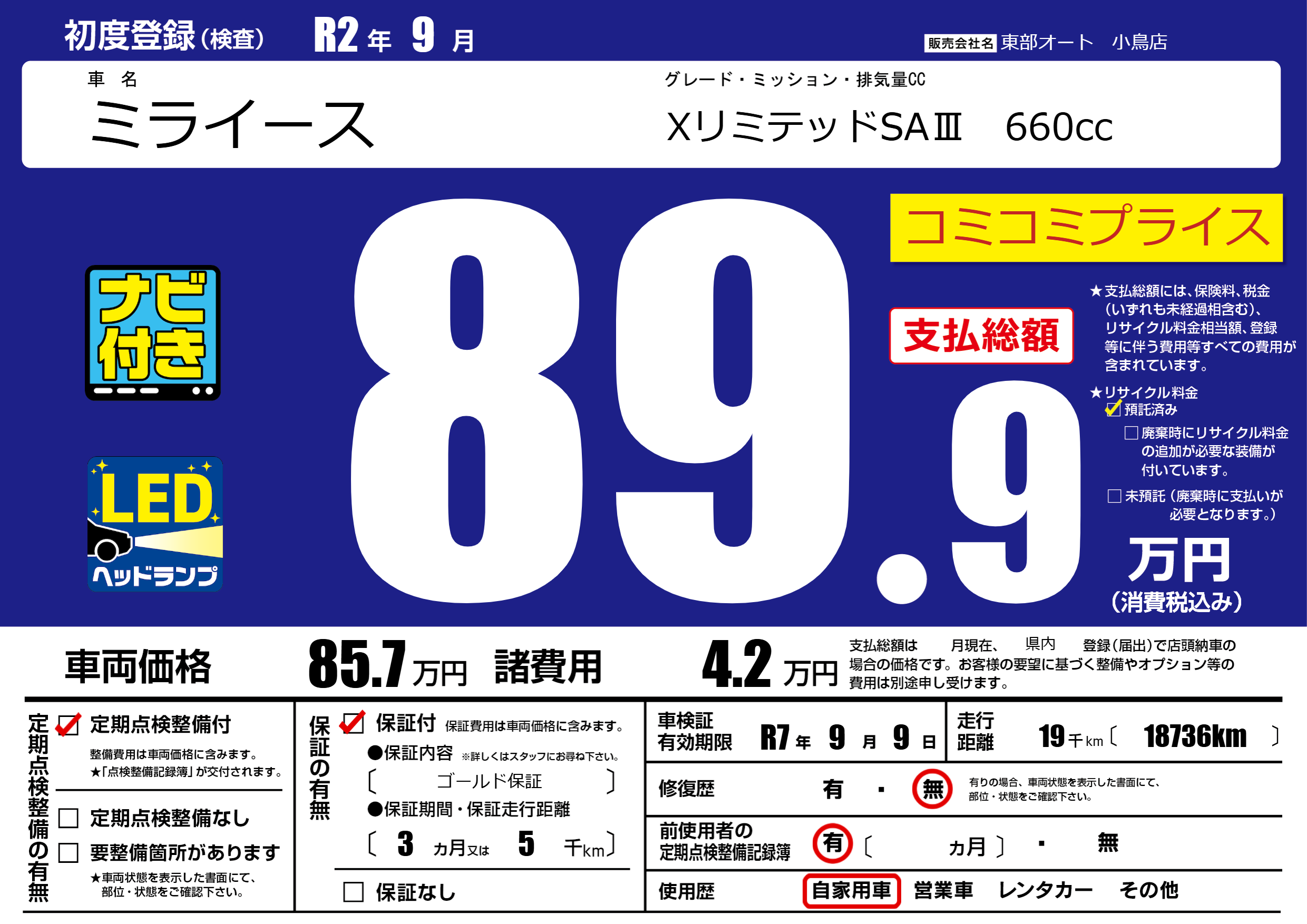 | 車検制限 | R7年 9月 9日 | ||