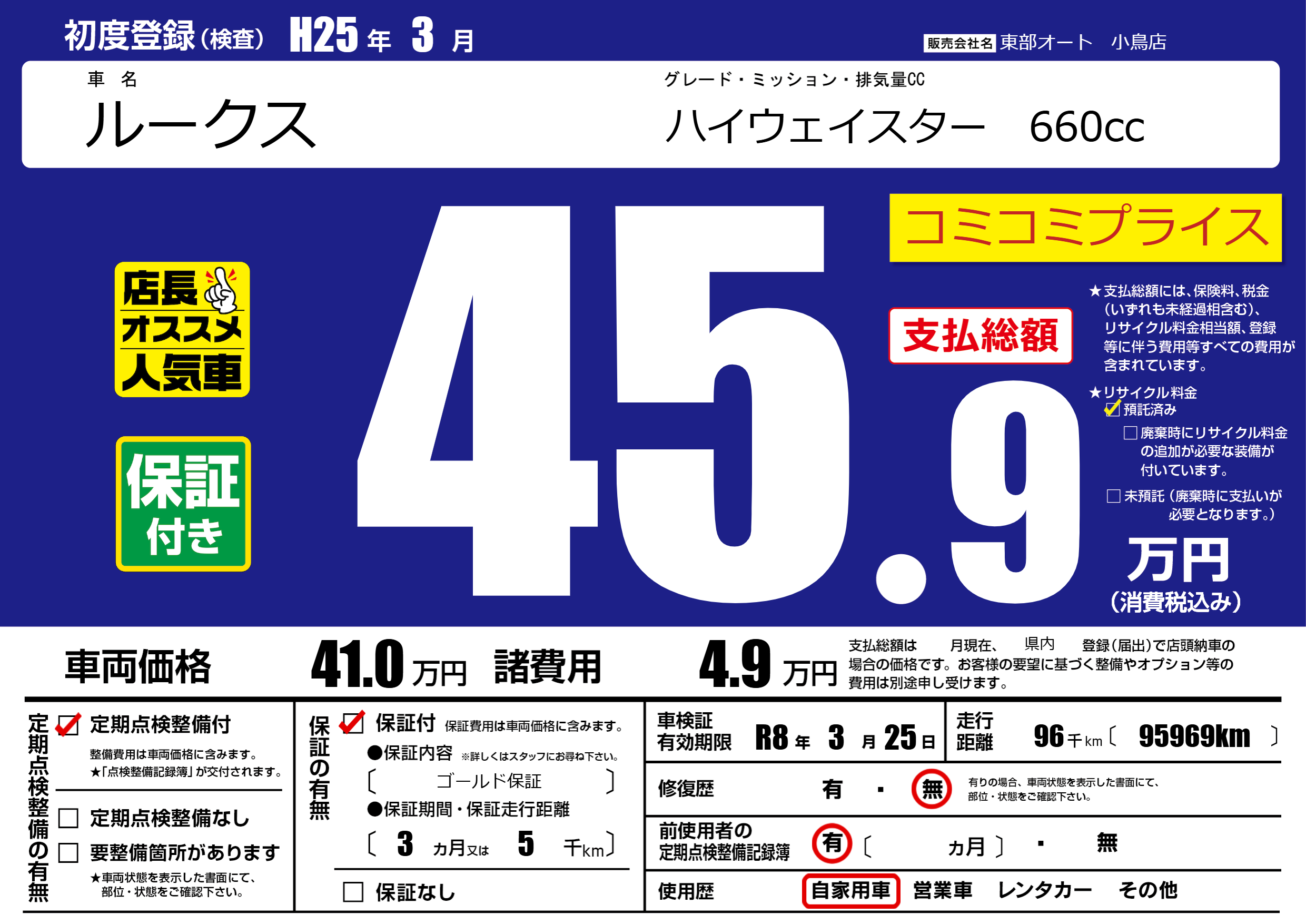 車検制限 R8年 3月 25日