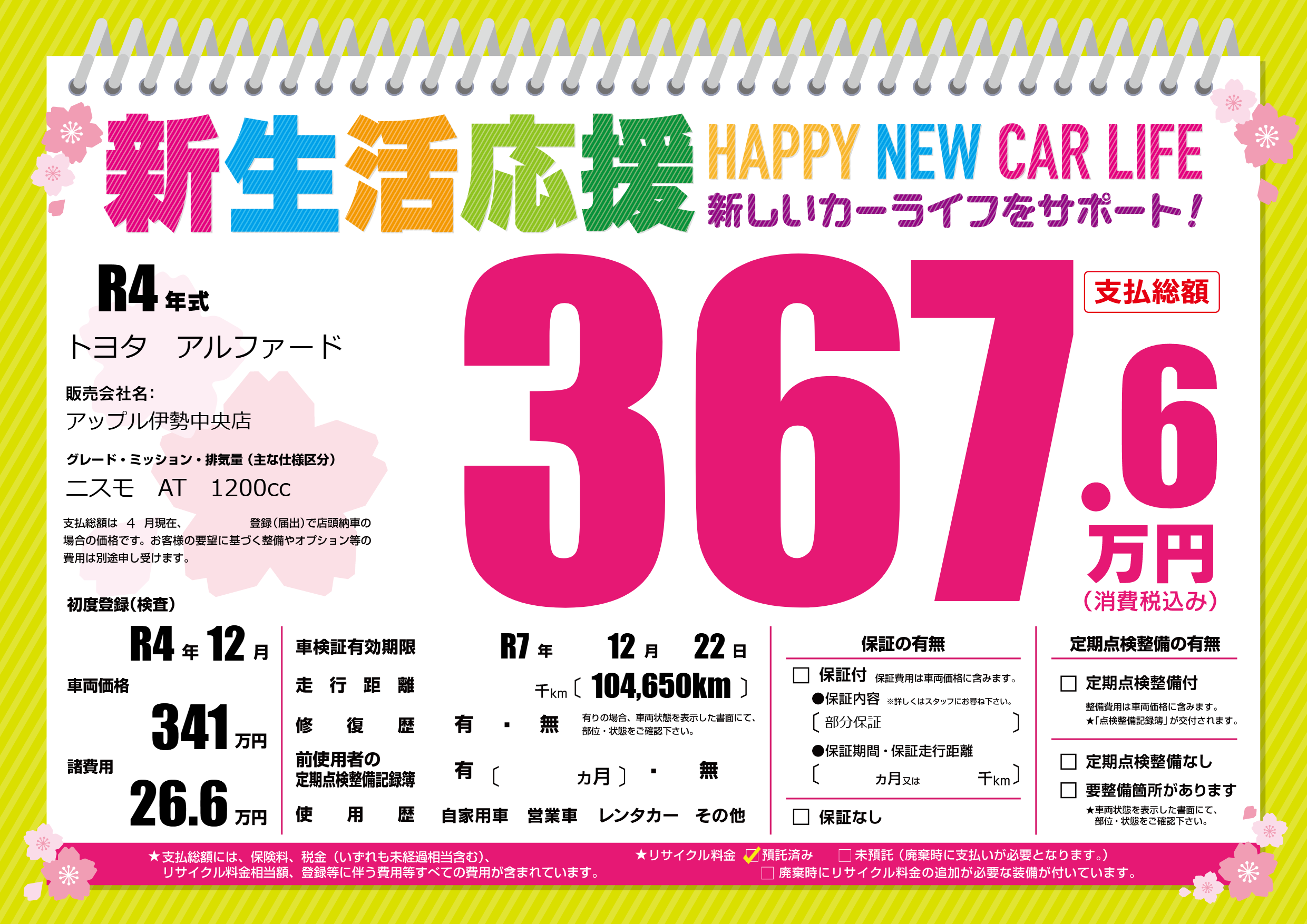 | 車検制限 | R7年 12月 22日 | ||