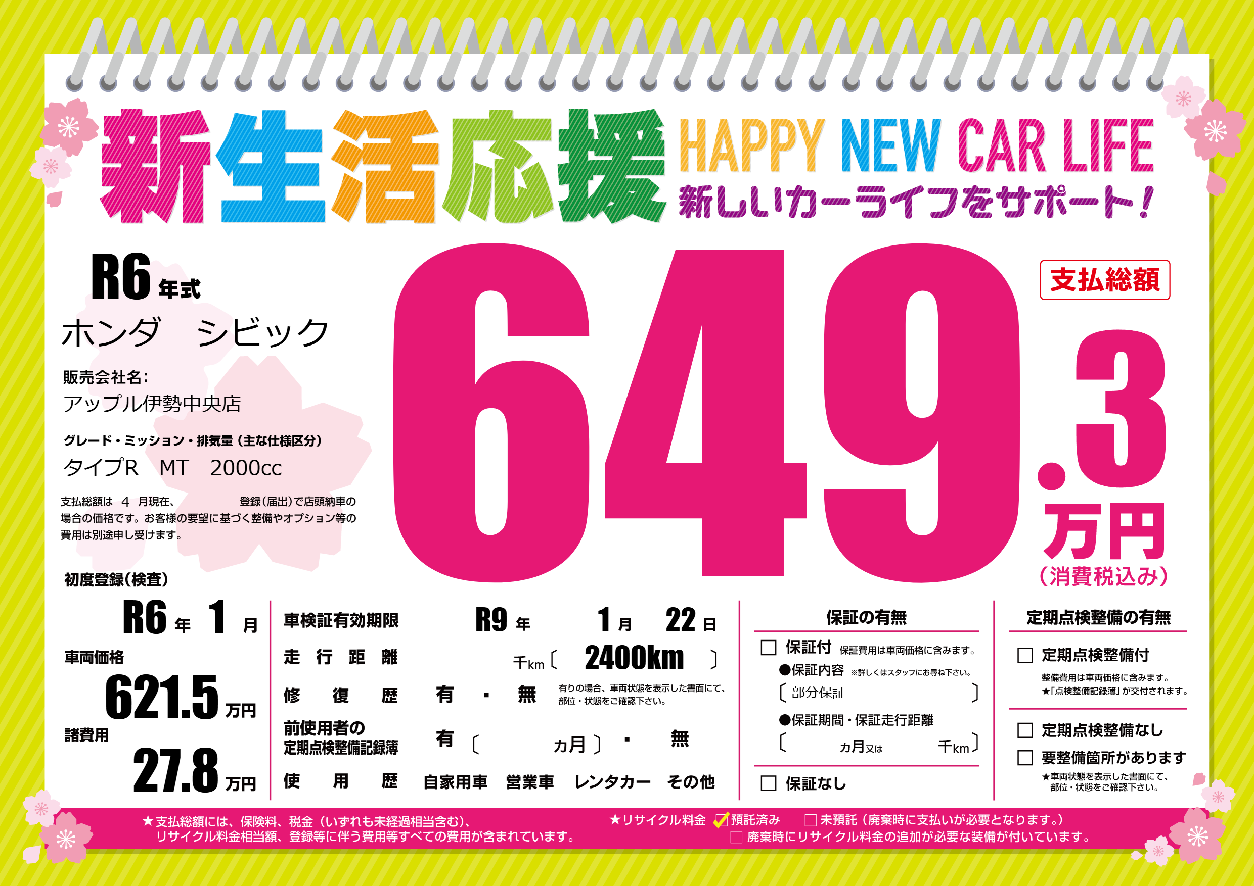 | 車名 | ホンダ シビック | グレード ミッション 排気量 |