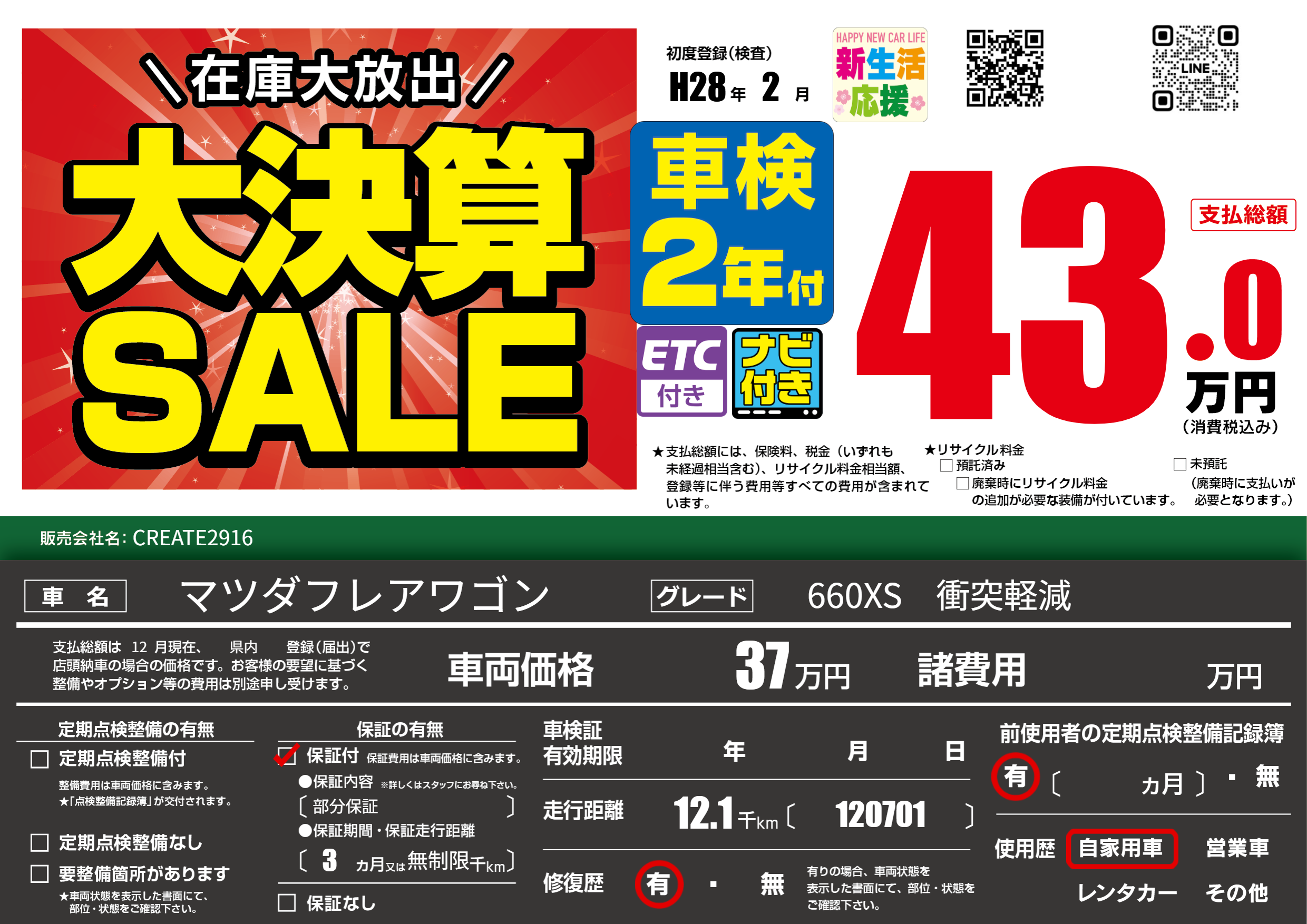 | 初年度登録 | H28年2月 | ||