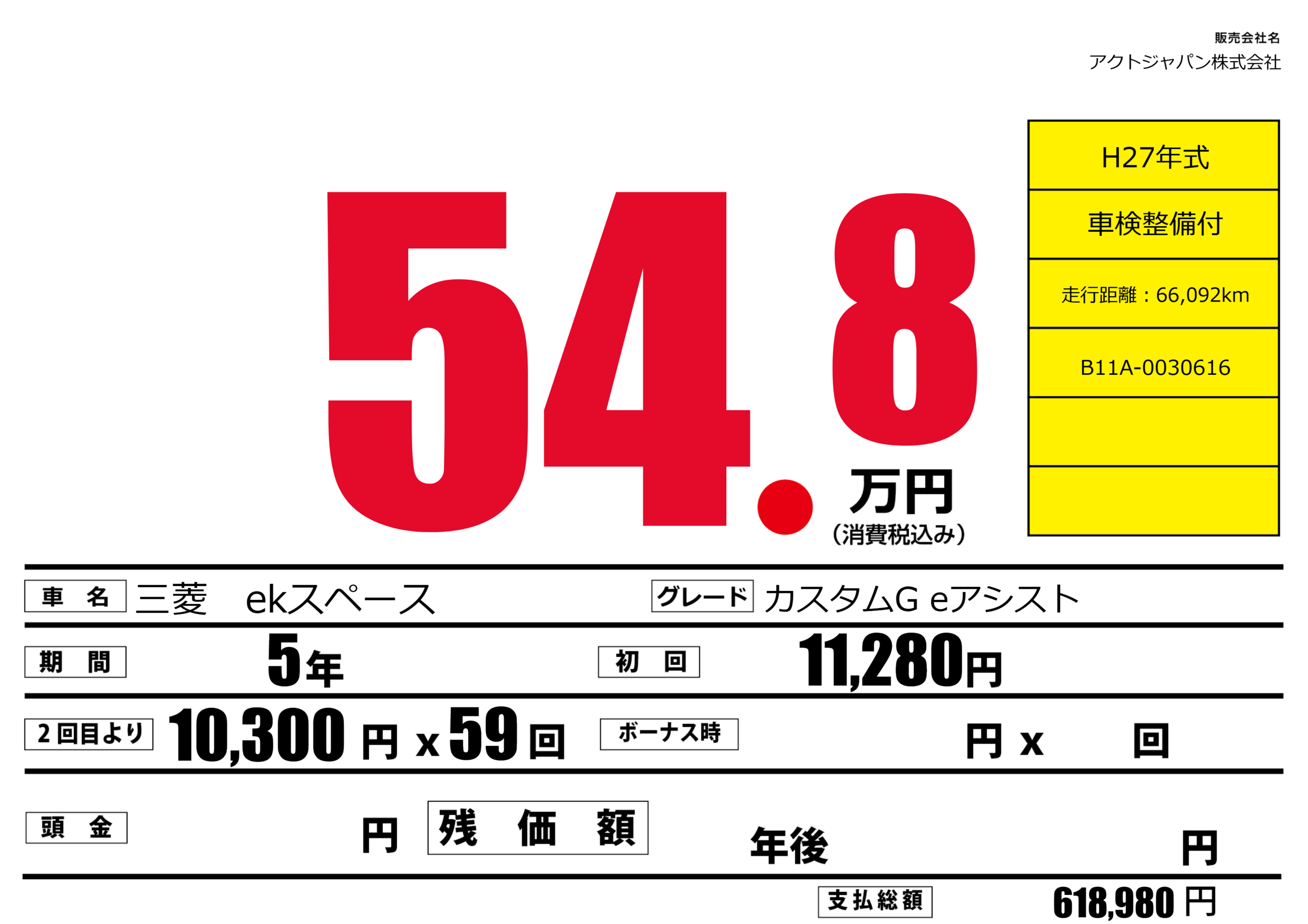 | 車名 | 三菱 ekスペース | グレード ミッション 排気量 |