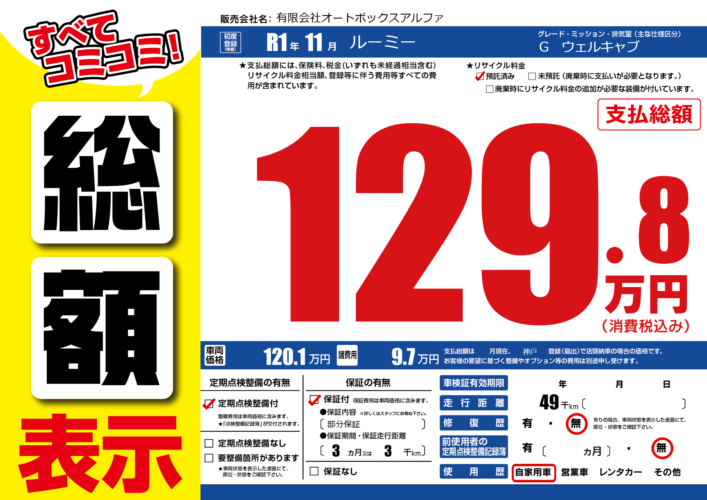 | 走行キロ | 4.9万km | ||