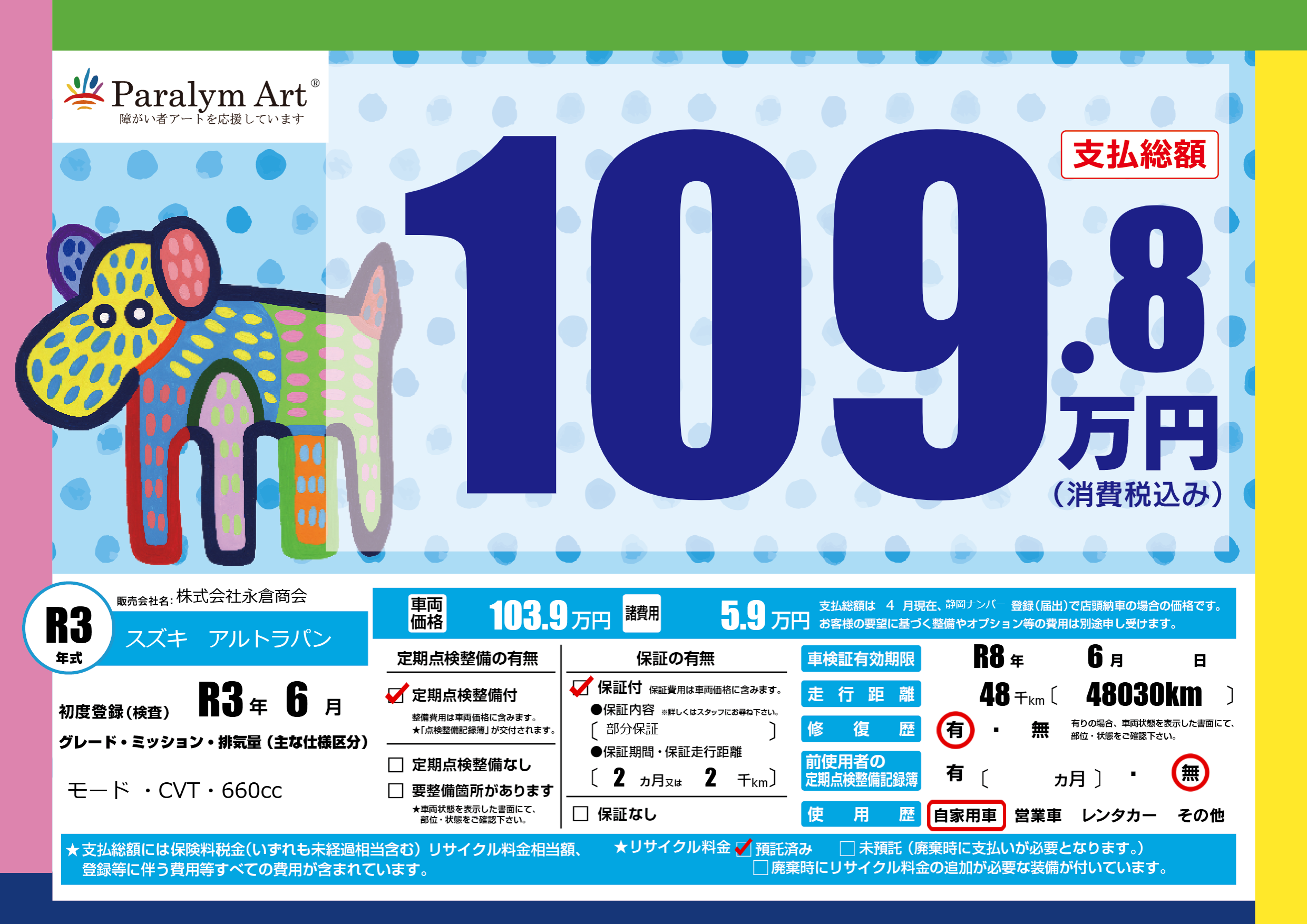 | 走行キロ | 4.8万km | 初年度登録 | R3年6月 |