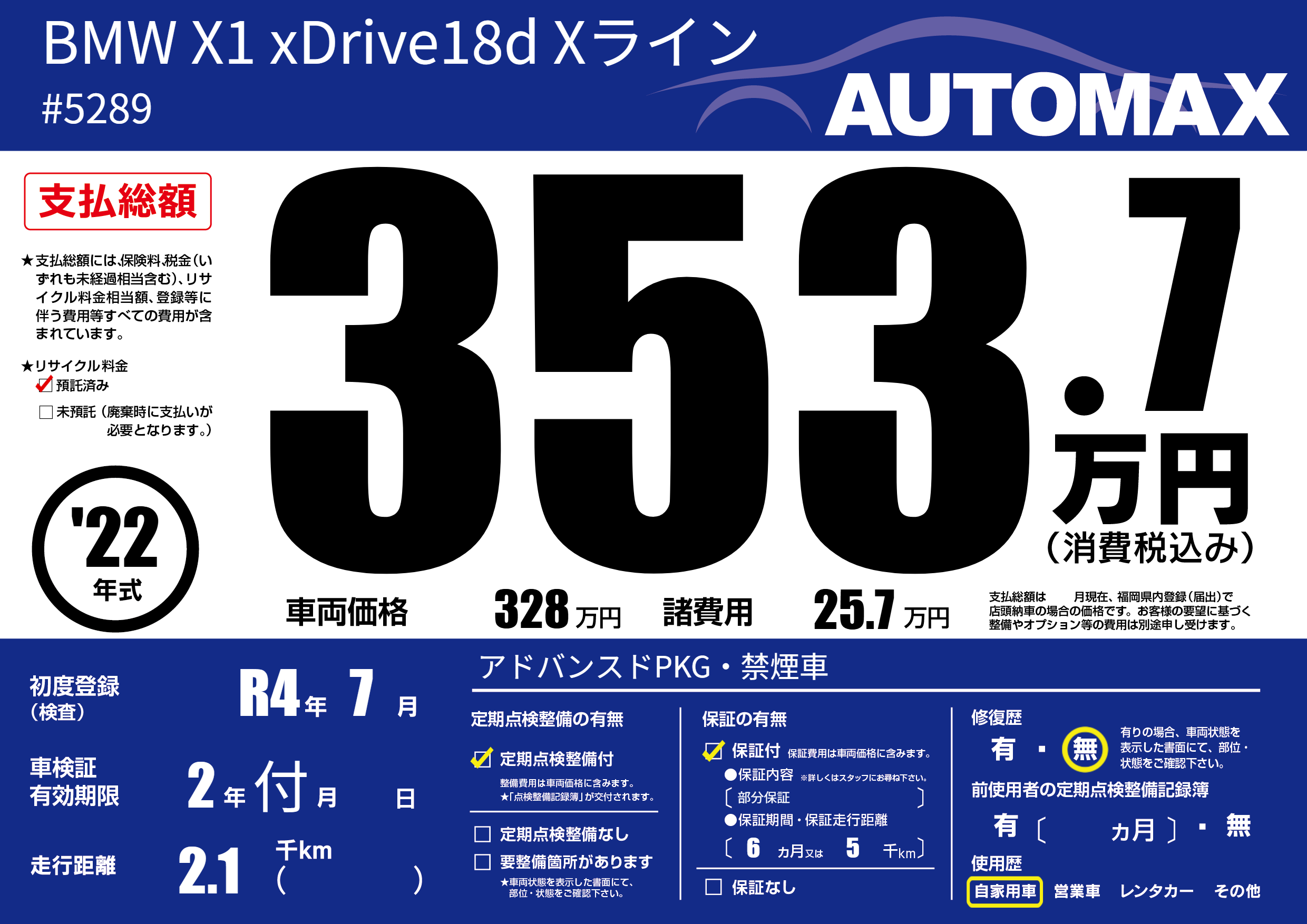 | 初年度登録 | R4年7月 | ||