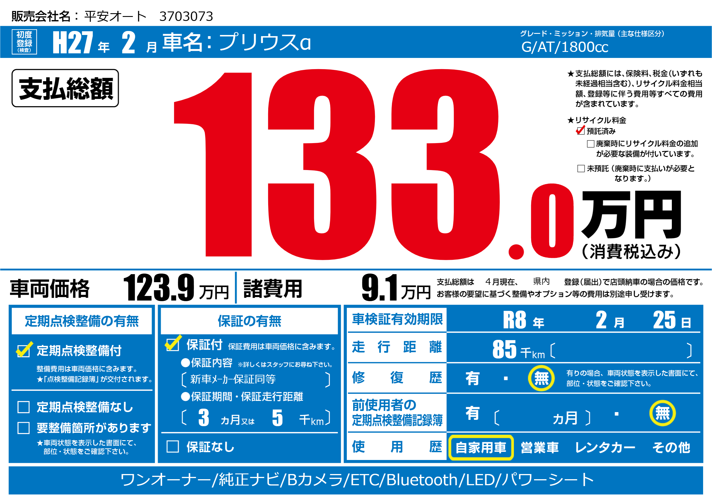 なし | 車検制限 | R8年2月25月 |