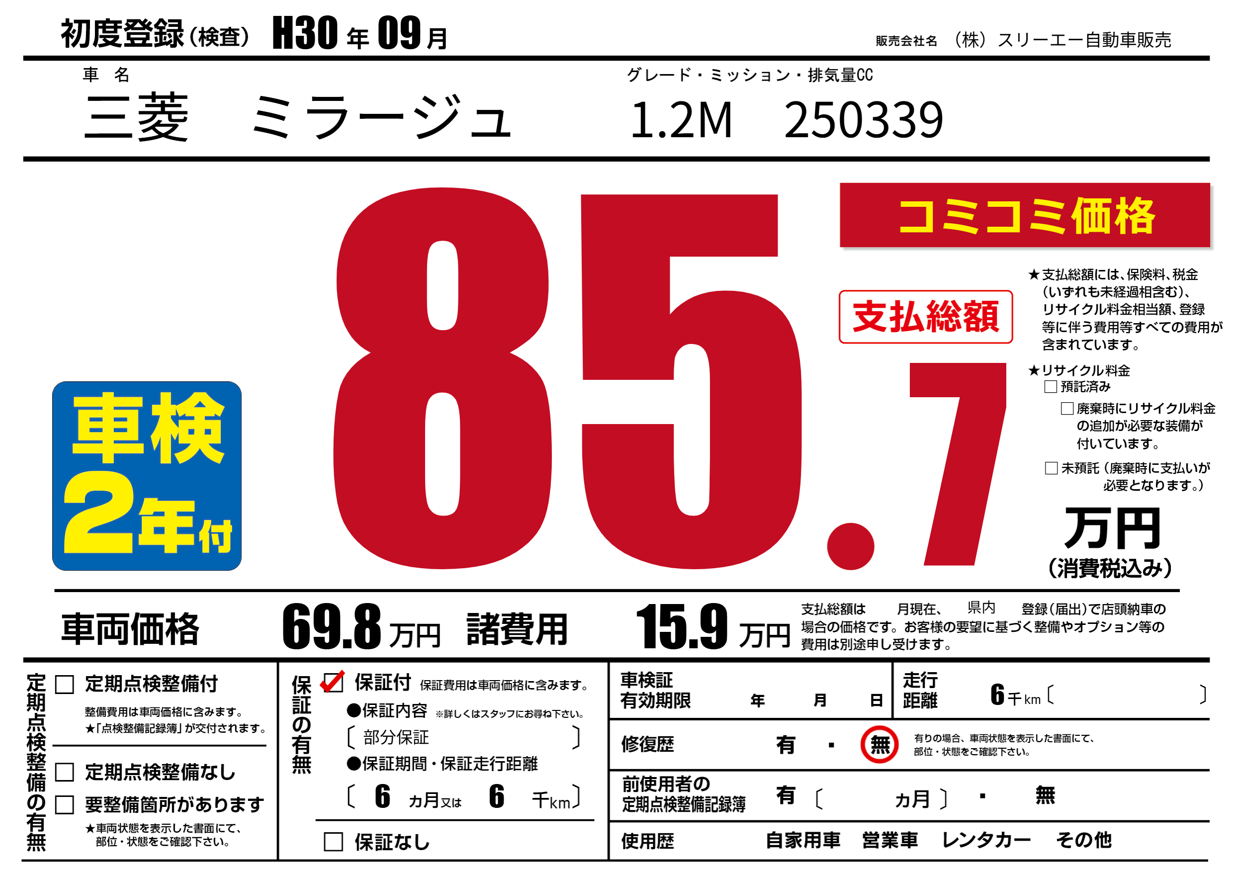 保証付き 保証内容(部分保証) 6ヶ月または(6)千kmまで |