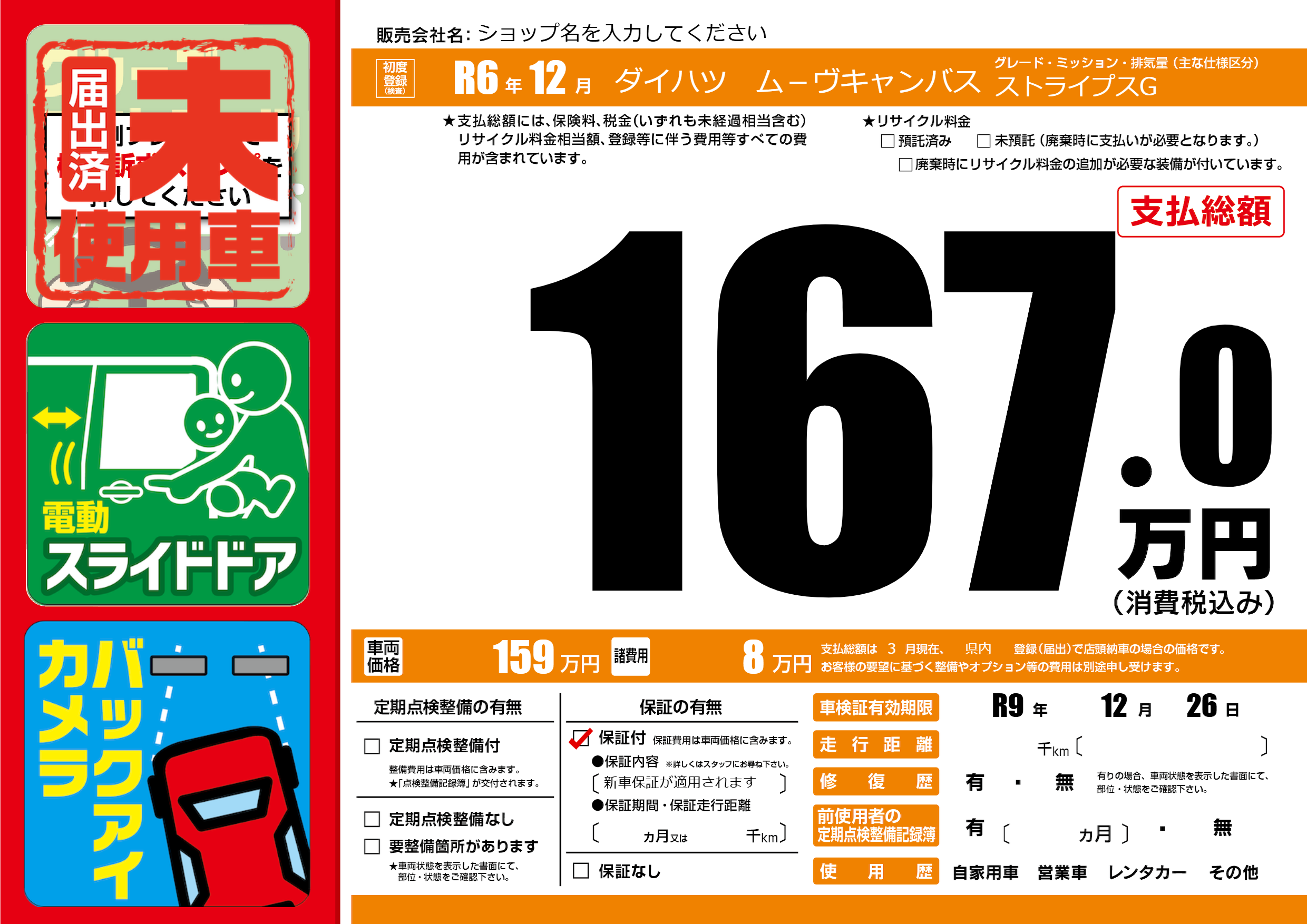 保証付き 保証内容(新車保証が適用されます) ---ヶ月または()千kmまで |