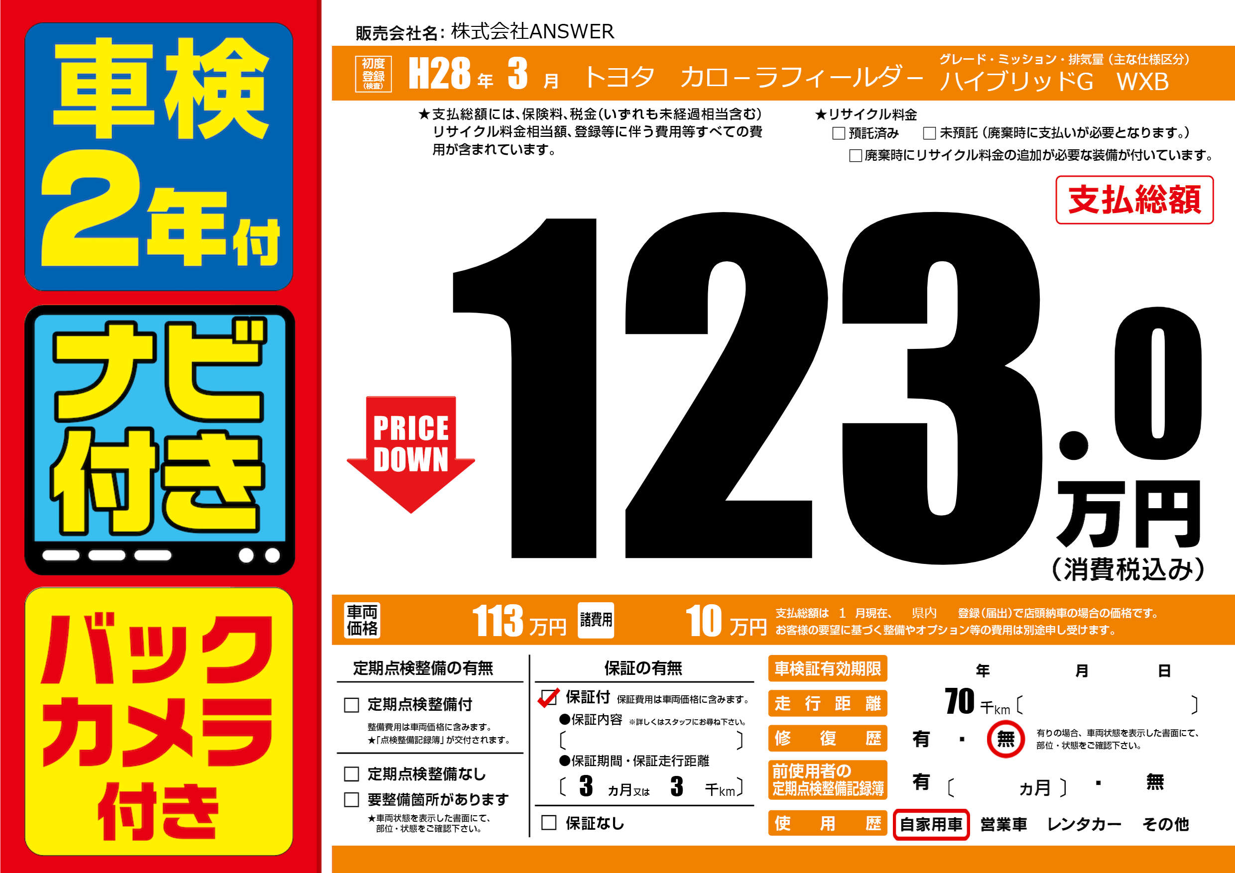 | 走行キロ | 7万km | ||