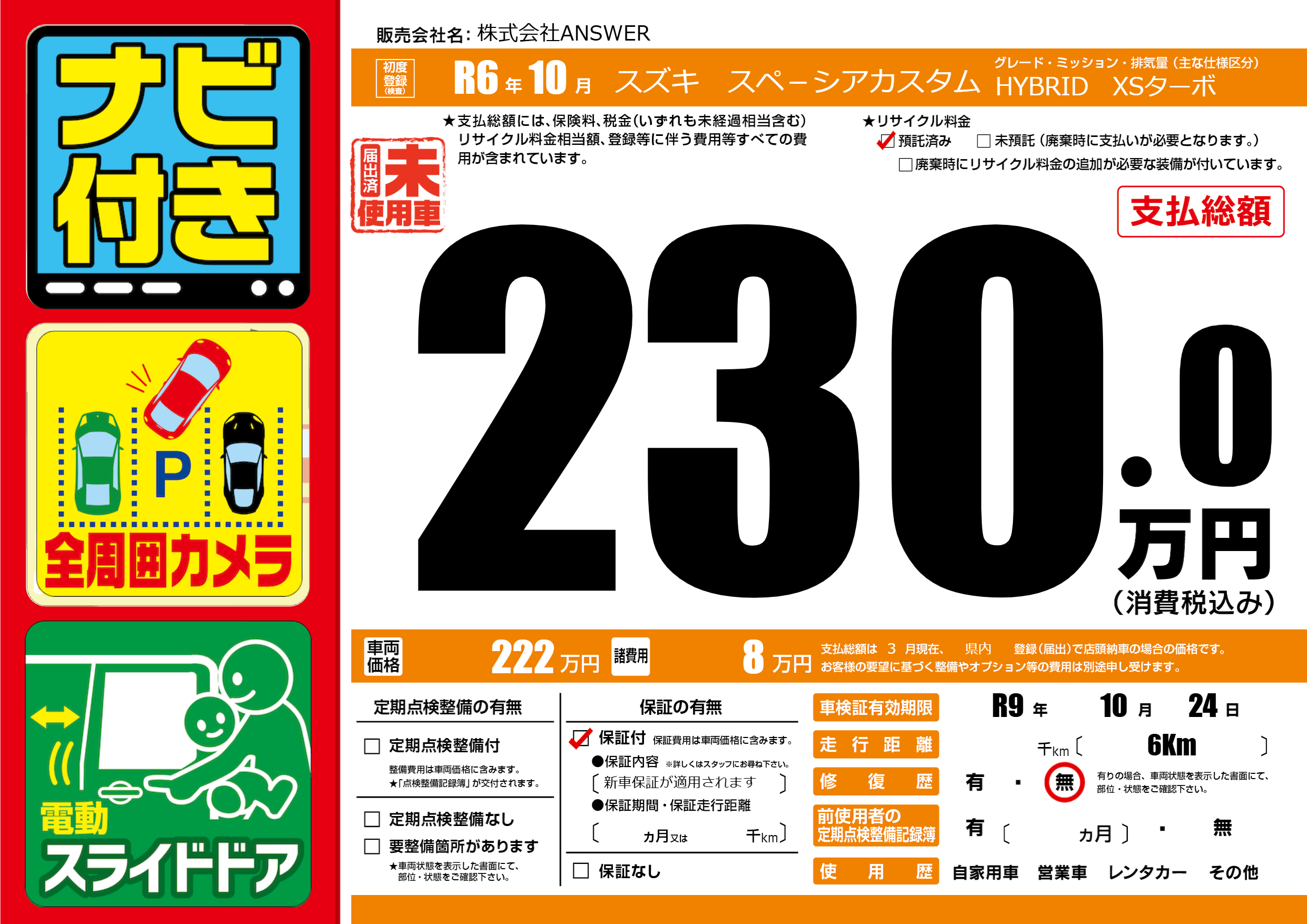 なし | 車検制限 | R9年10月24月 |
