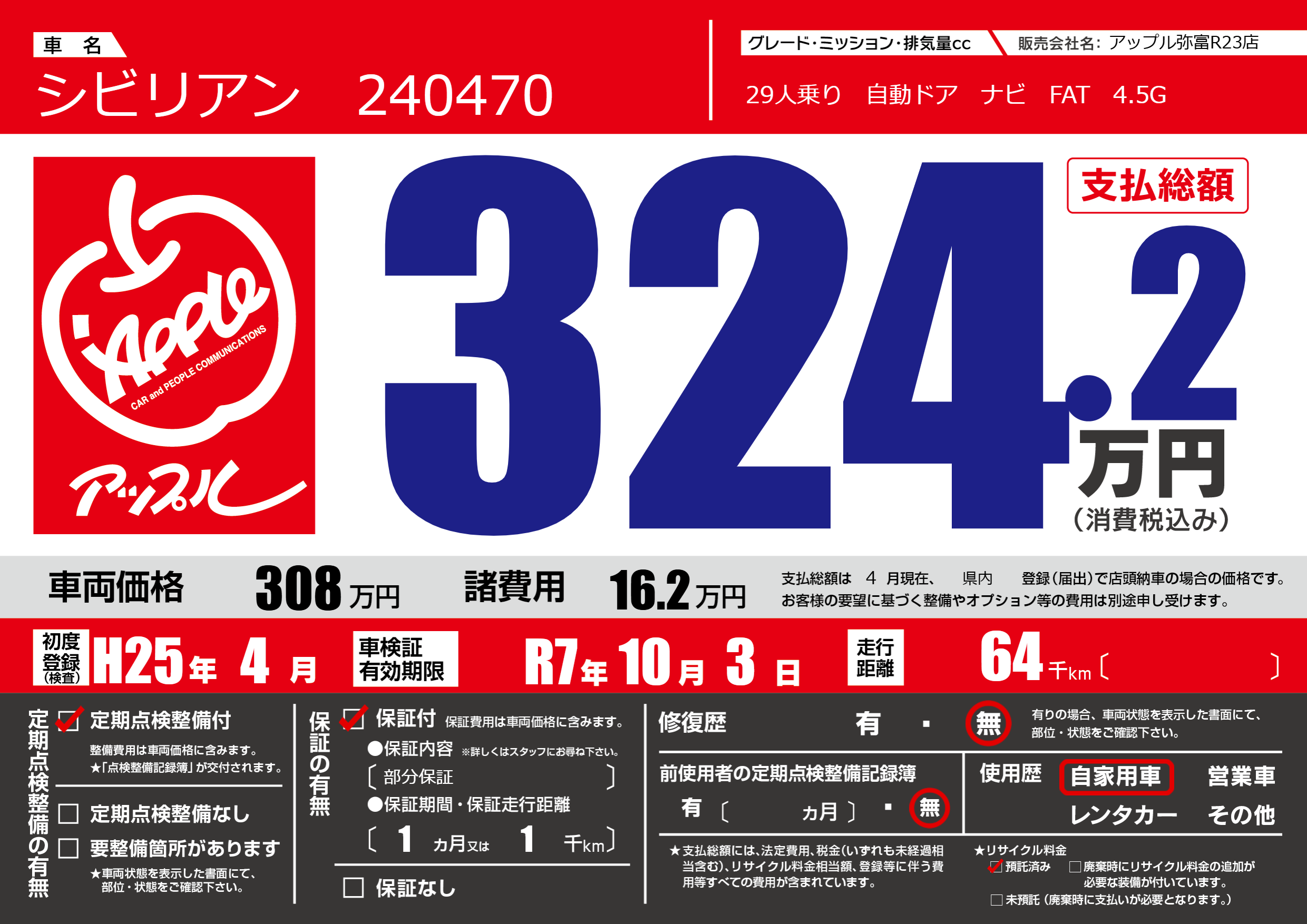 | 車名 | シビリアン 240470 | グレード ミッション 排気量 |