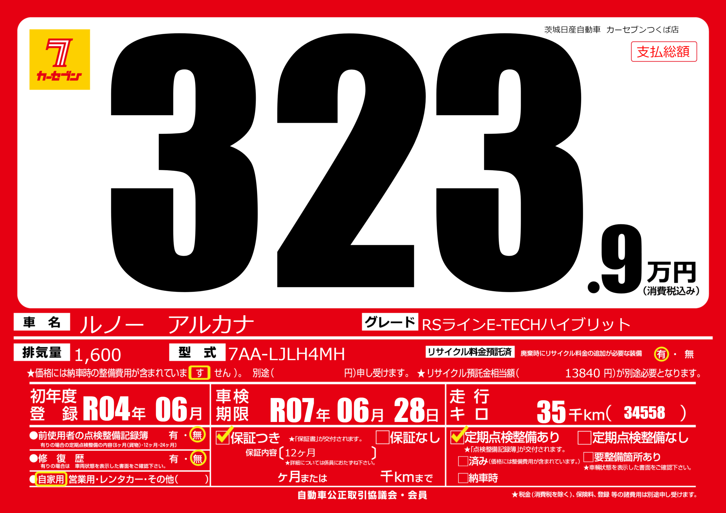 | 走行キロ | 3.5万km | 初年度登録 | R04年06月 |