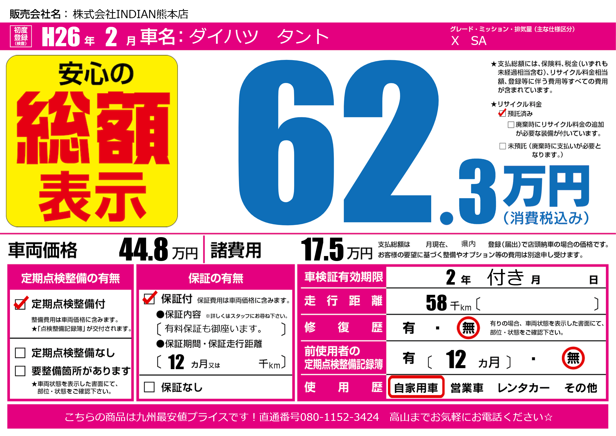 なし | 車検制限 | 2年付き月---月 |