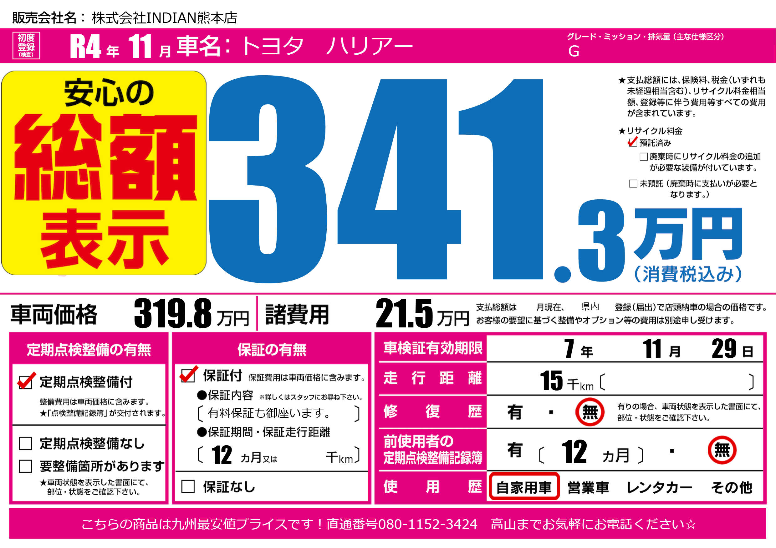 なし | 車検制限 | 7年11月29月 |