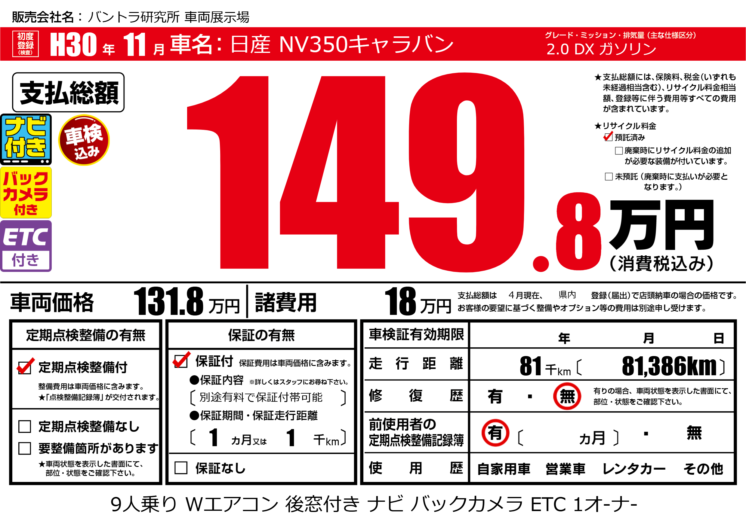 | 走行キロ | 8.1万km | ||