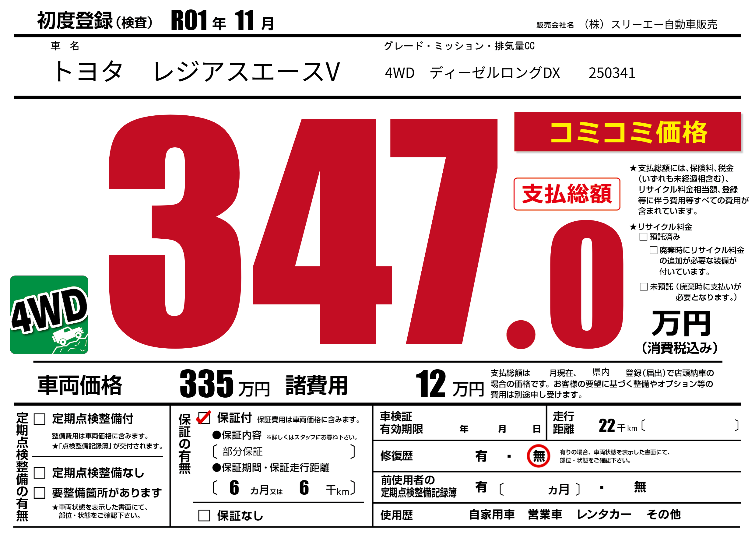 保証付き 保証内容(部分保証) 6ヶ月または(6)千kmまで |