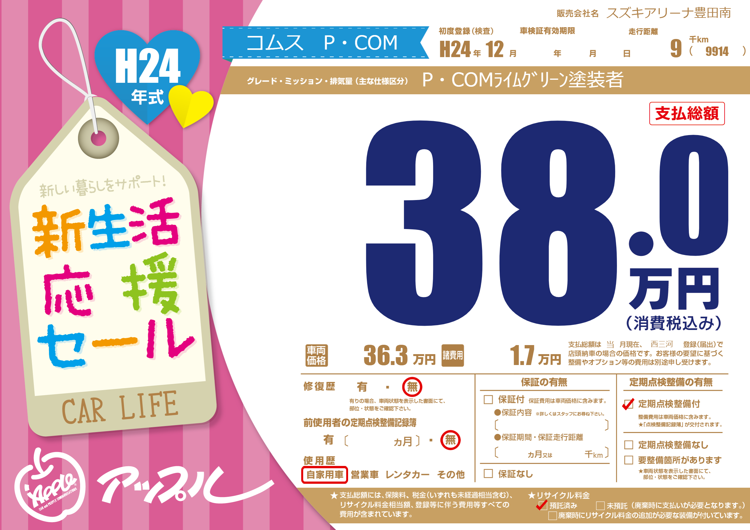 | 車名 | コムス P・COM | グレード ミッション 排気量 |