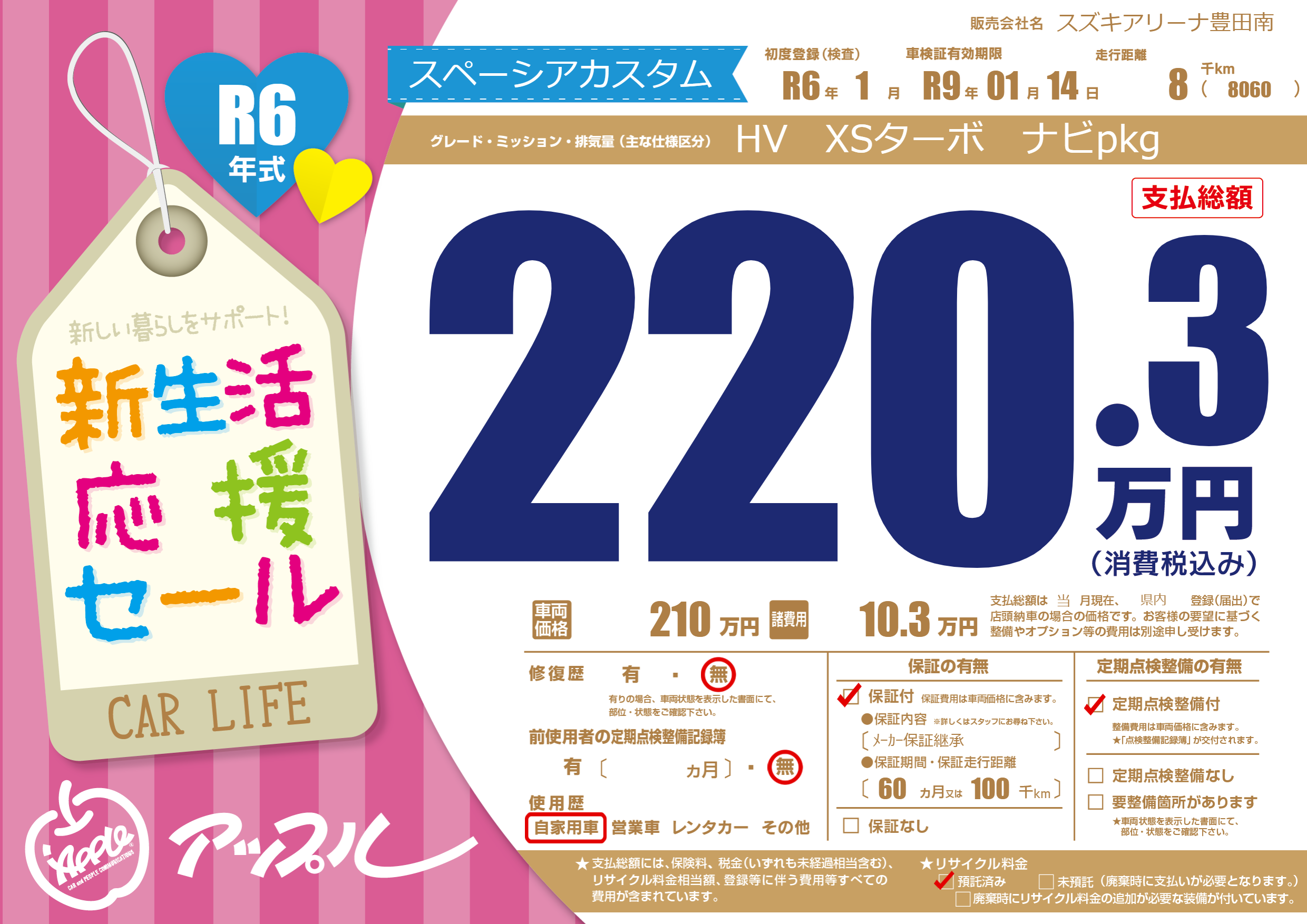 | 走行キロ | 0.8万km | 初年度登録 | R6年1月 |