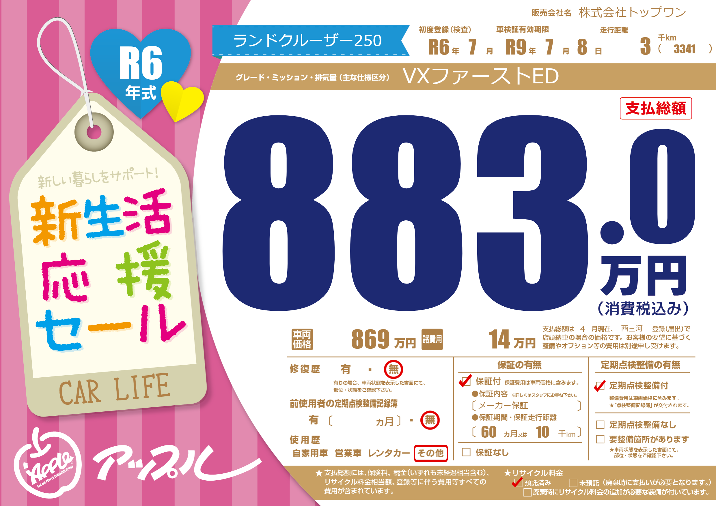 なし | 車検制限 | R9年7月8月 |