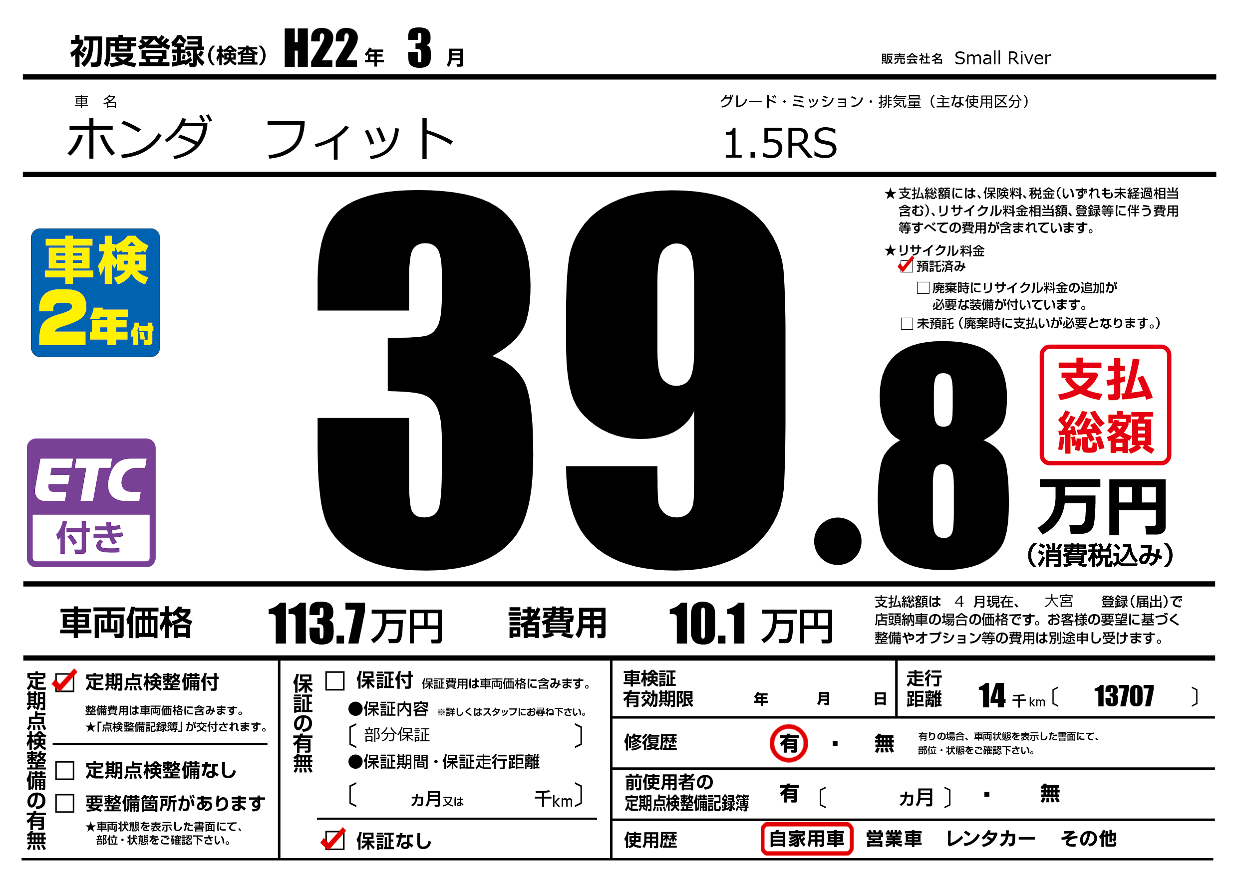 | 初年度登録 | H22年3月 | ||