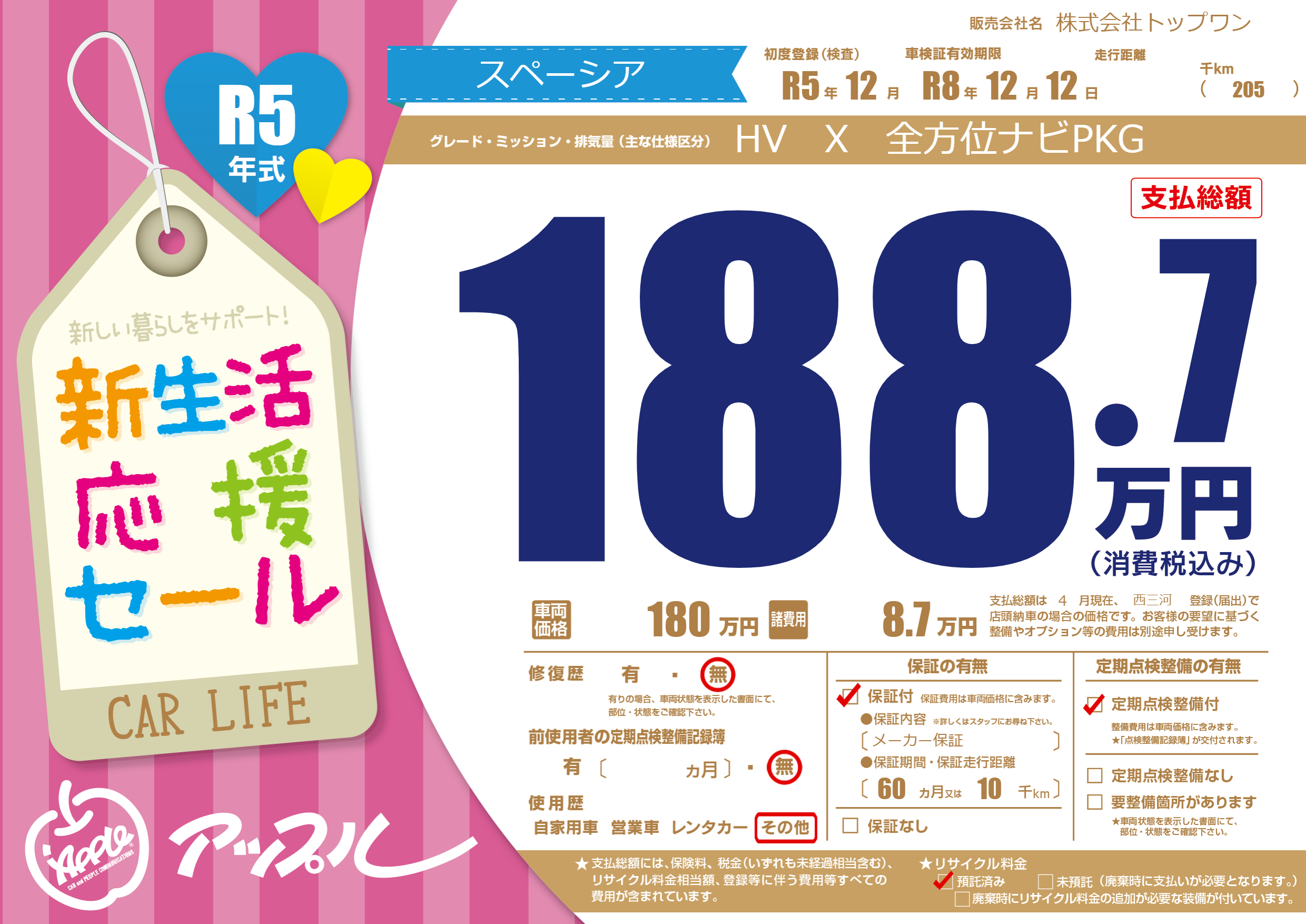なし | 車検制限 | R8年12月12月 |