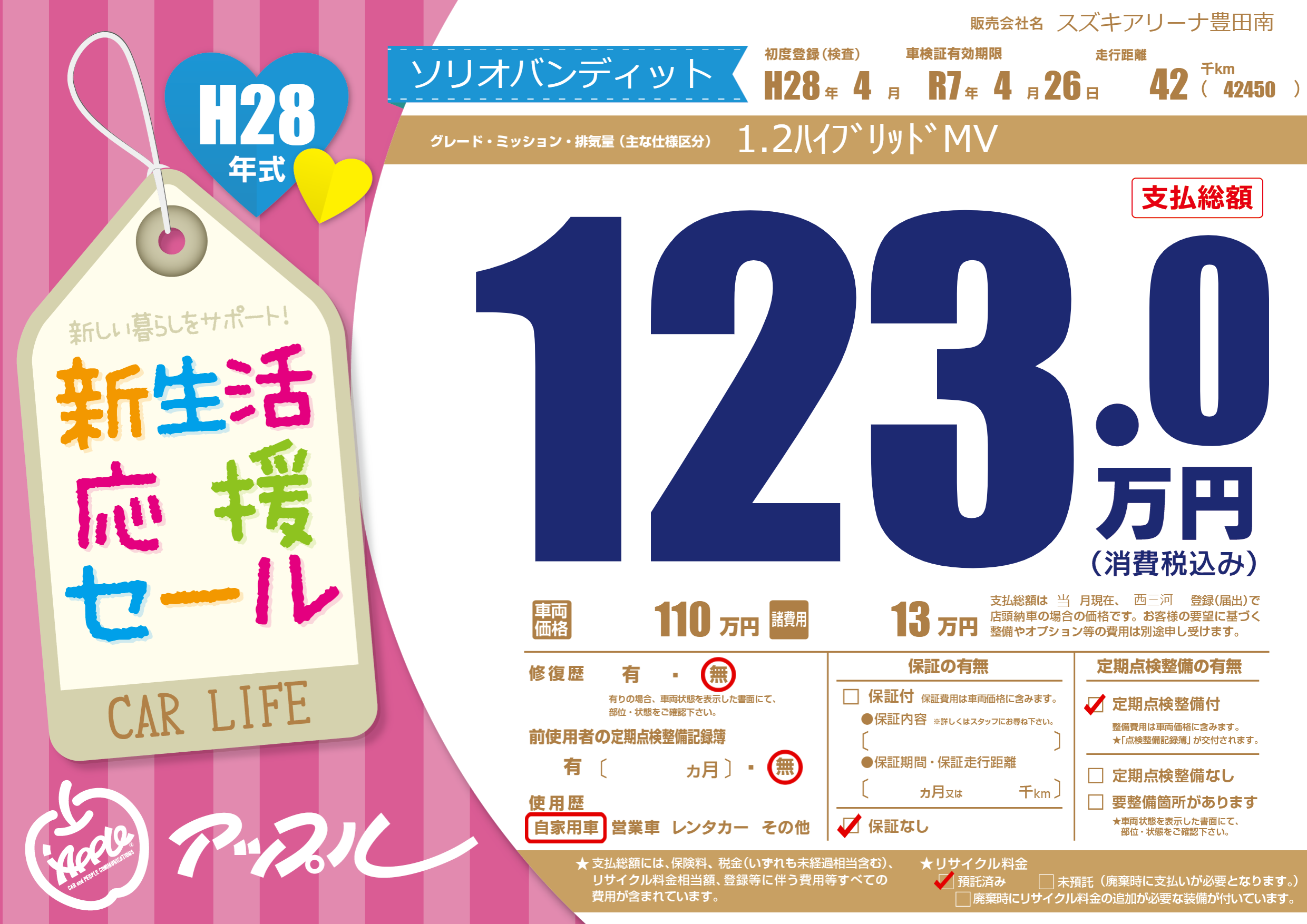初年度登録 H28年4月