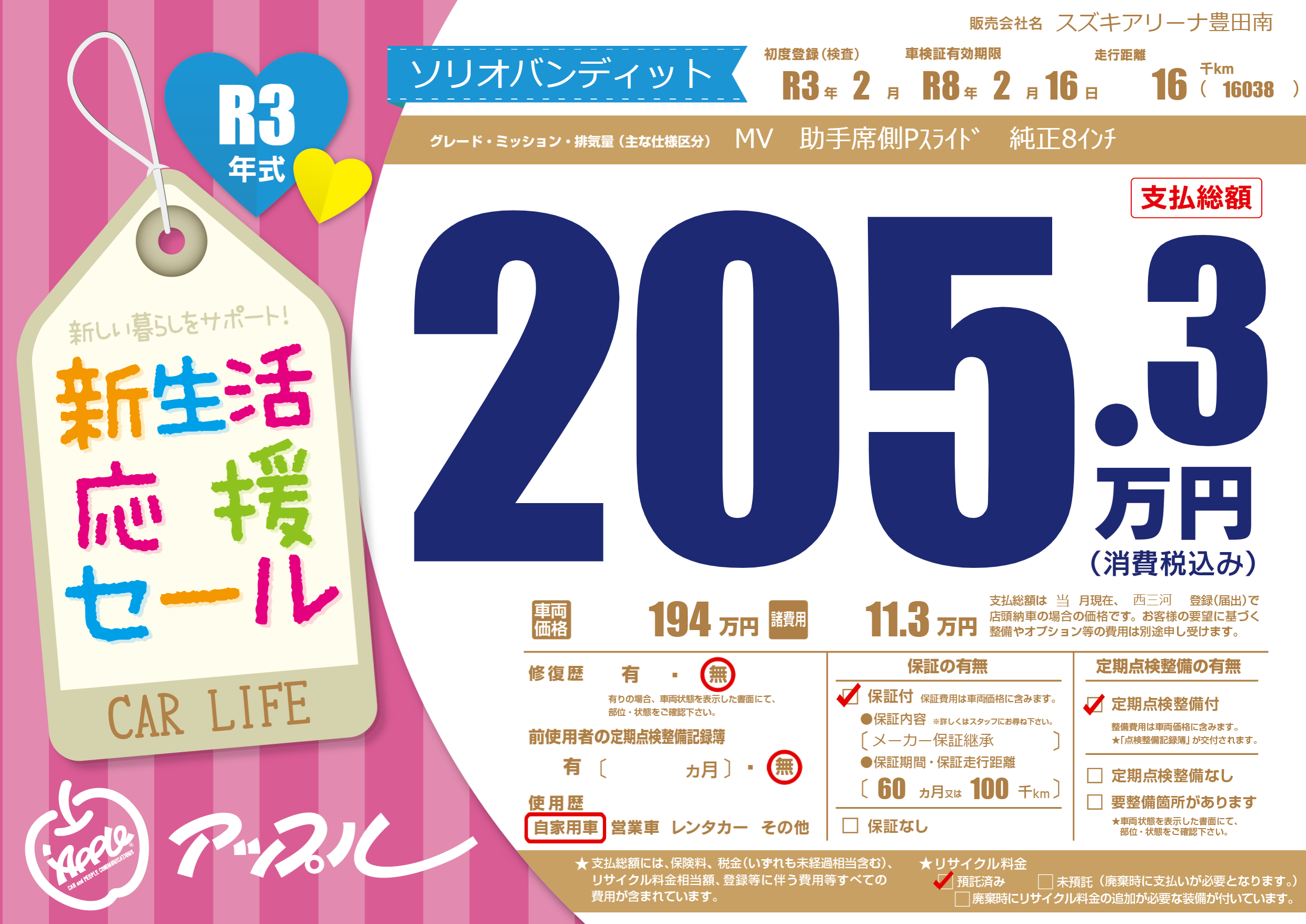 | 車名 | ソリオバンディット | グレード ミッション 排気量 |
