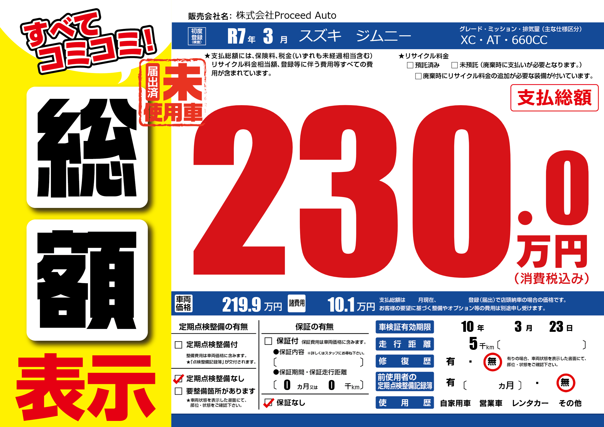 | 走行キロ | 0.5万km | 初年度登録 | R7年3月 |