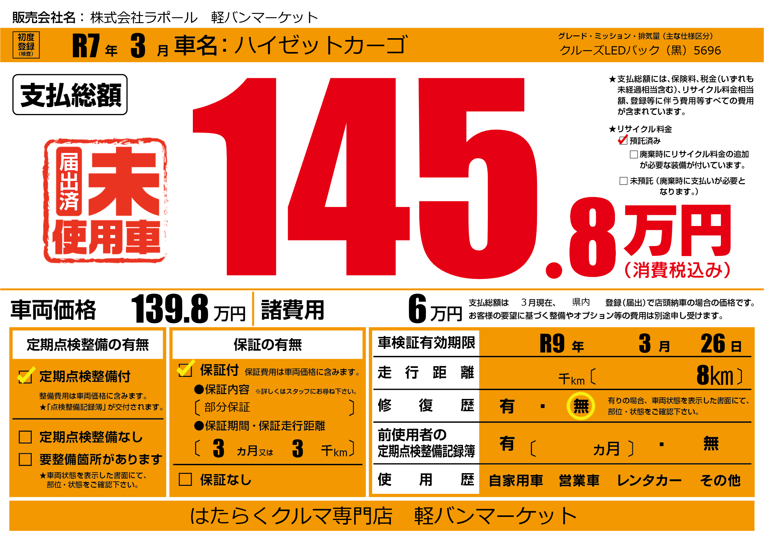 | 走行キロ | - | 初年度登録 | R7年3月 |
