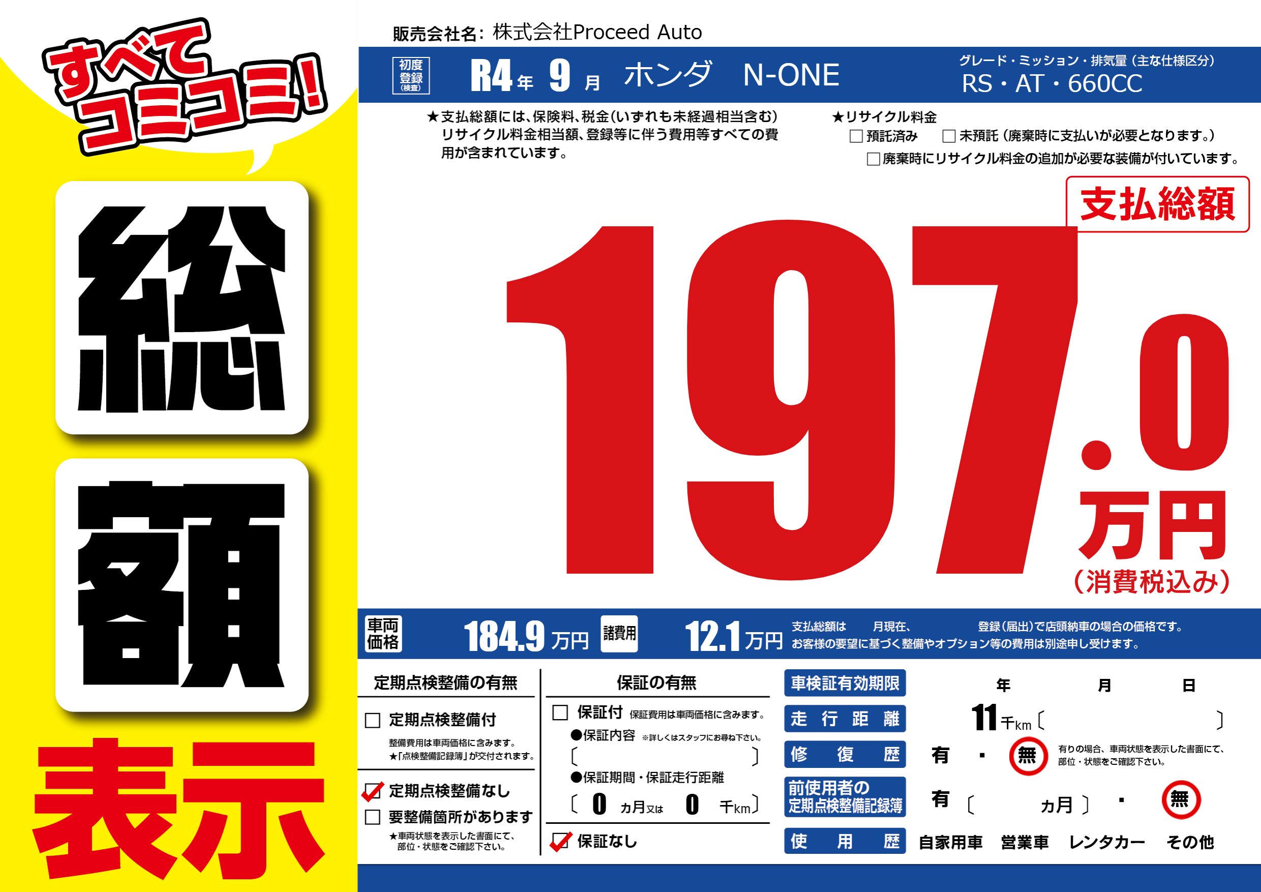 | 定期点検整備 | 定期点検整備なし | ||