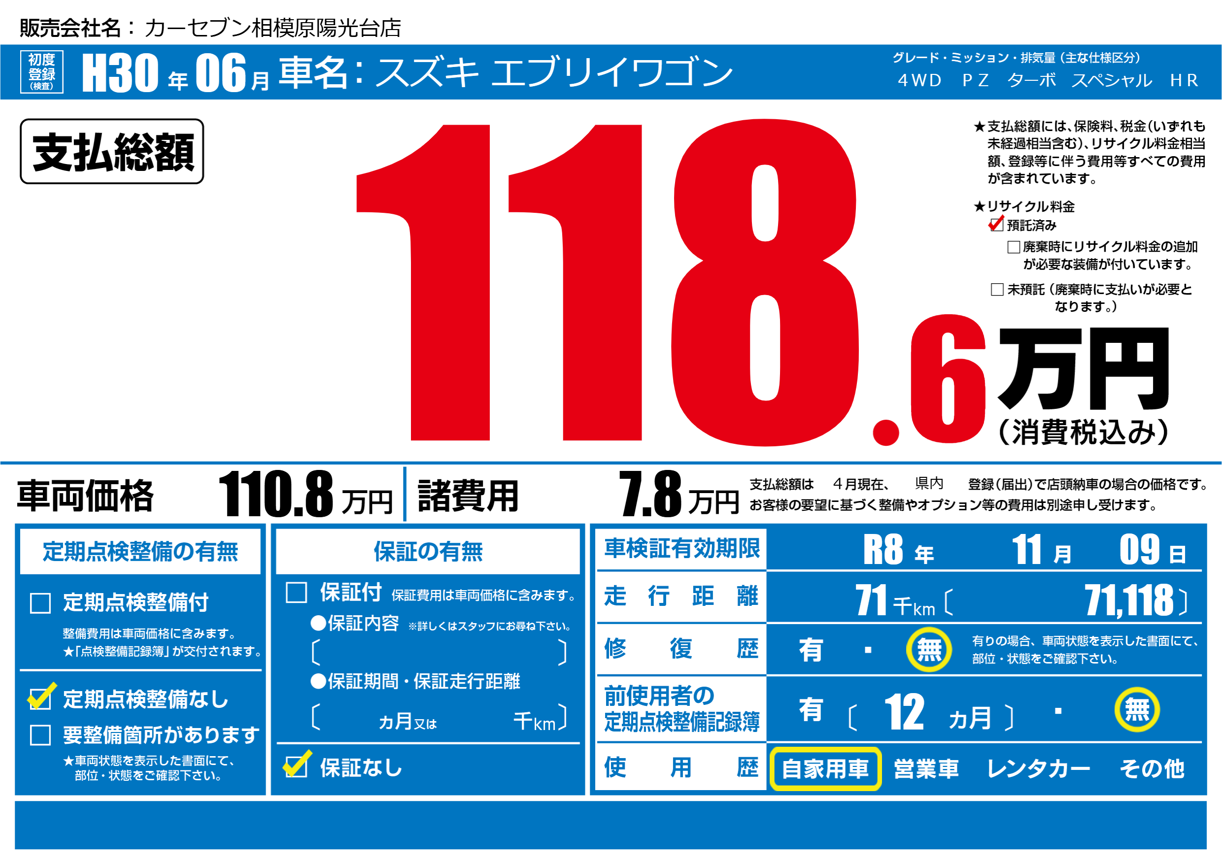 | 走行キロ | 7.1万km | 初年度登録 | H30年06月 |
