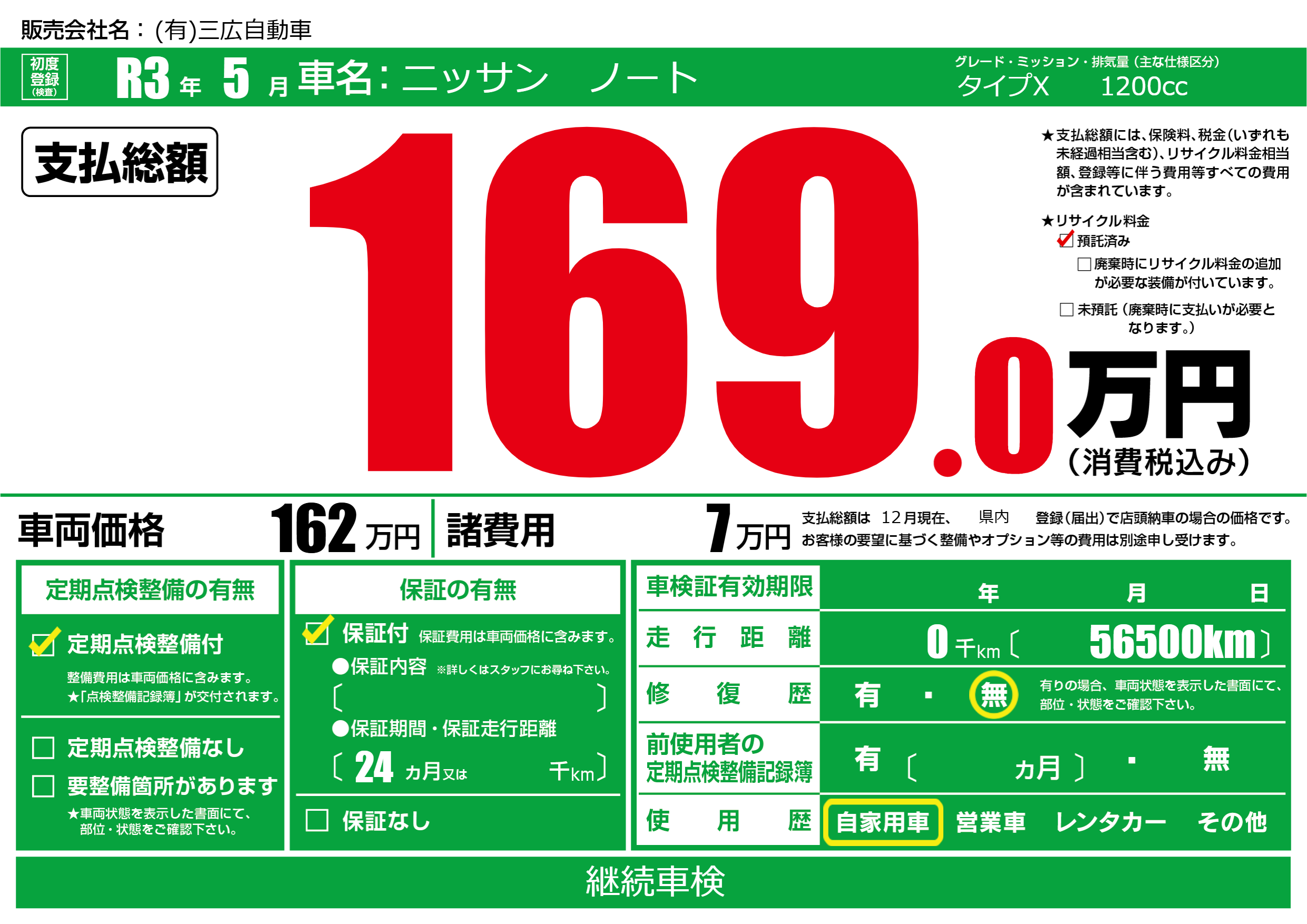 | 定期点検整備 | 定期点検整備あり | ||