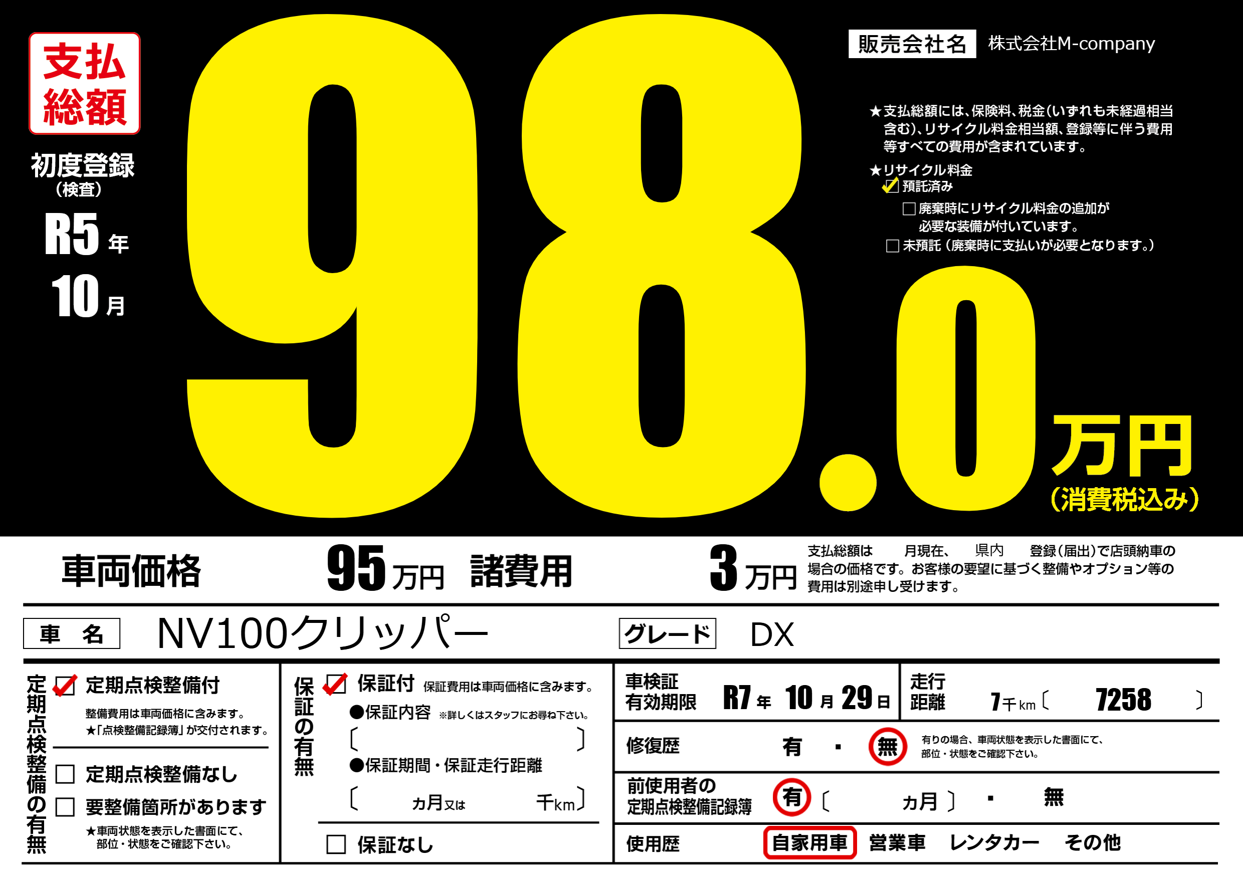 | 車名 | NV100クリッパー | グレード ミッション 排気量 |