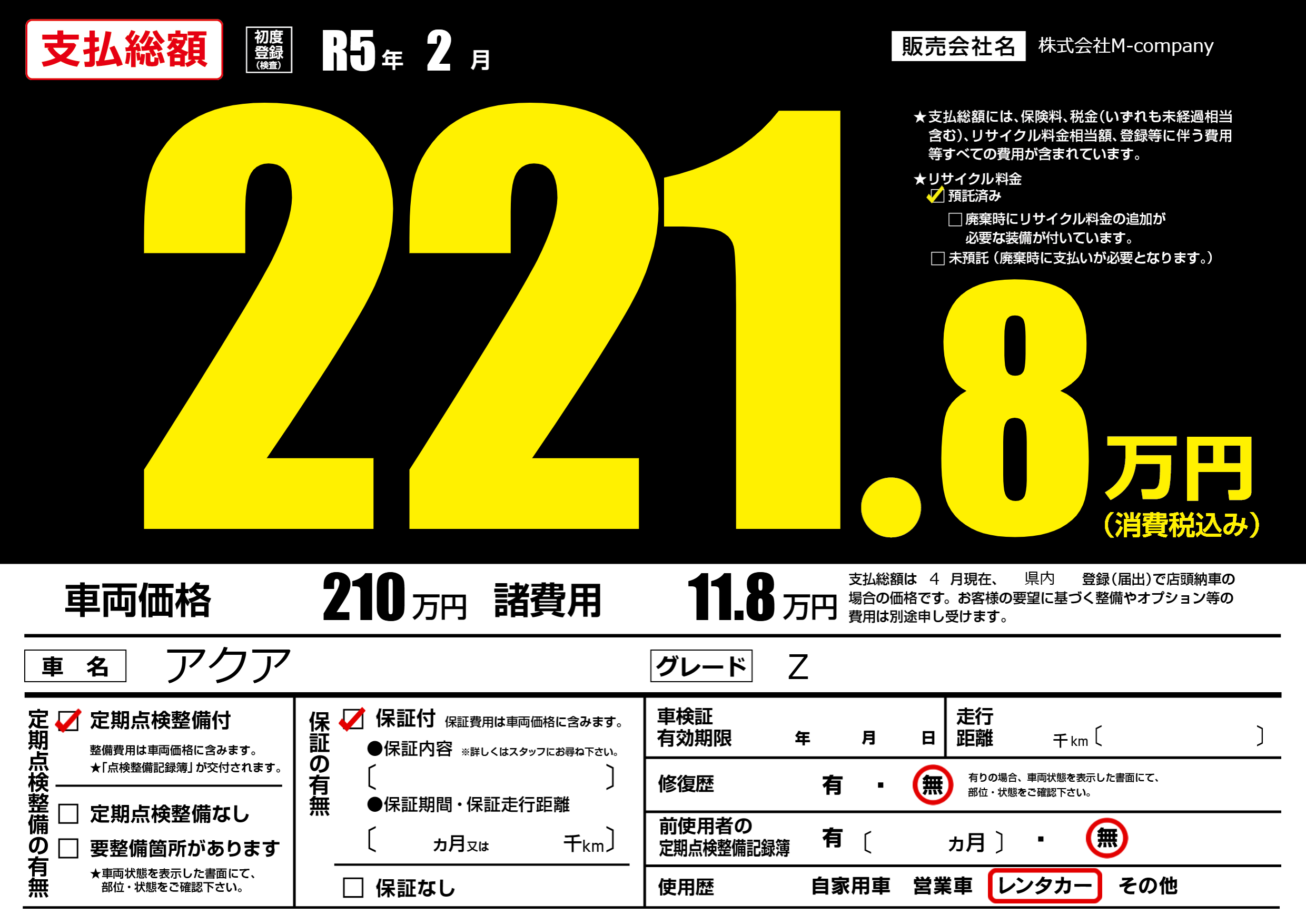 | 走行キロ | - | 初年度登録 | R5年2月 |