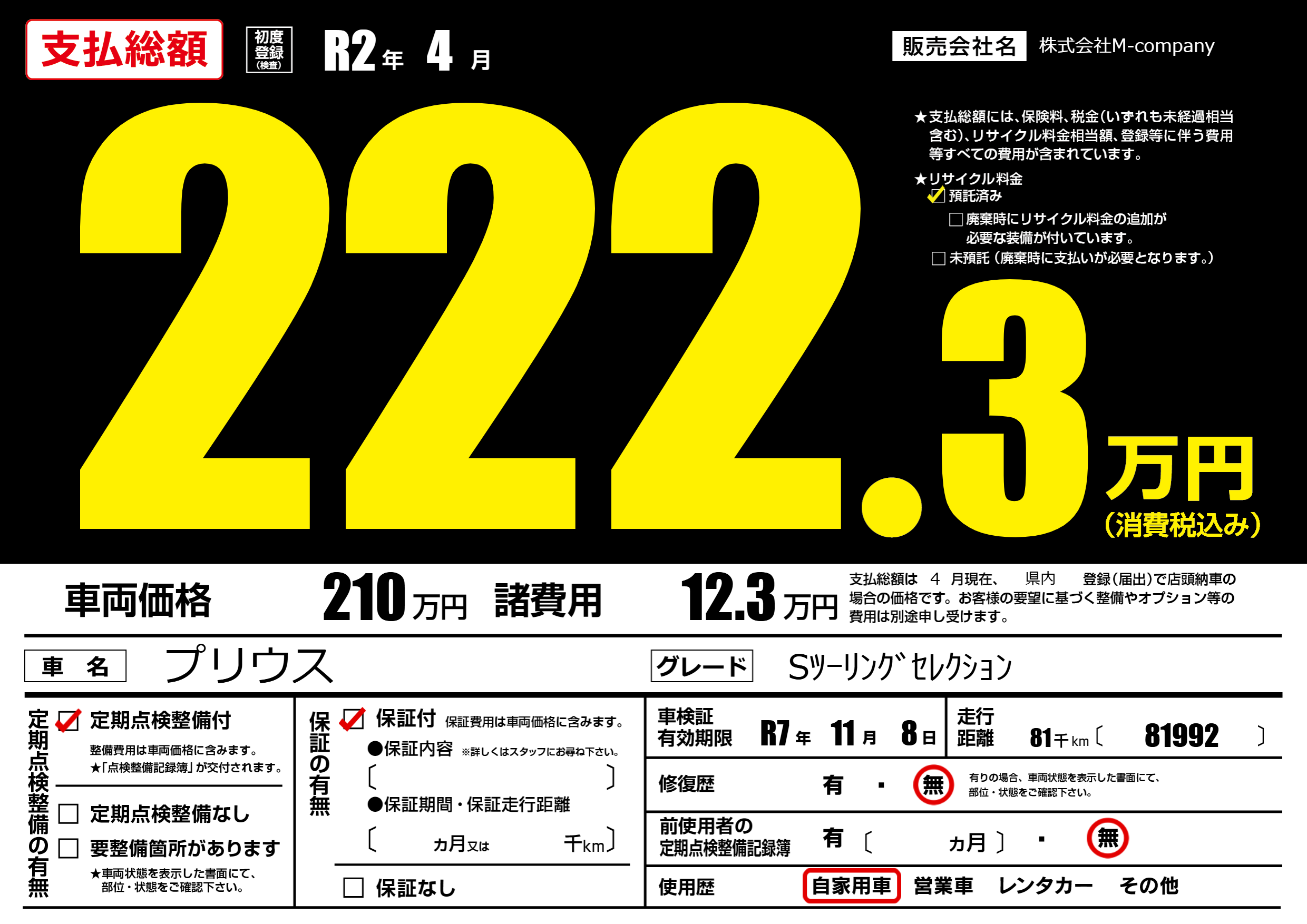 | 定期点検整備 | 定期点検整備あり | ||