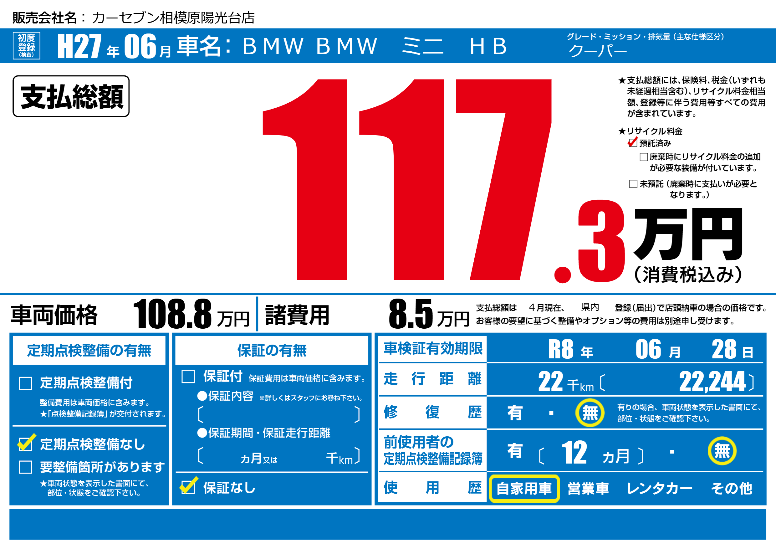 | 車検制限 | R8年 06月 28日 | ||