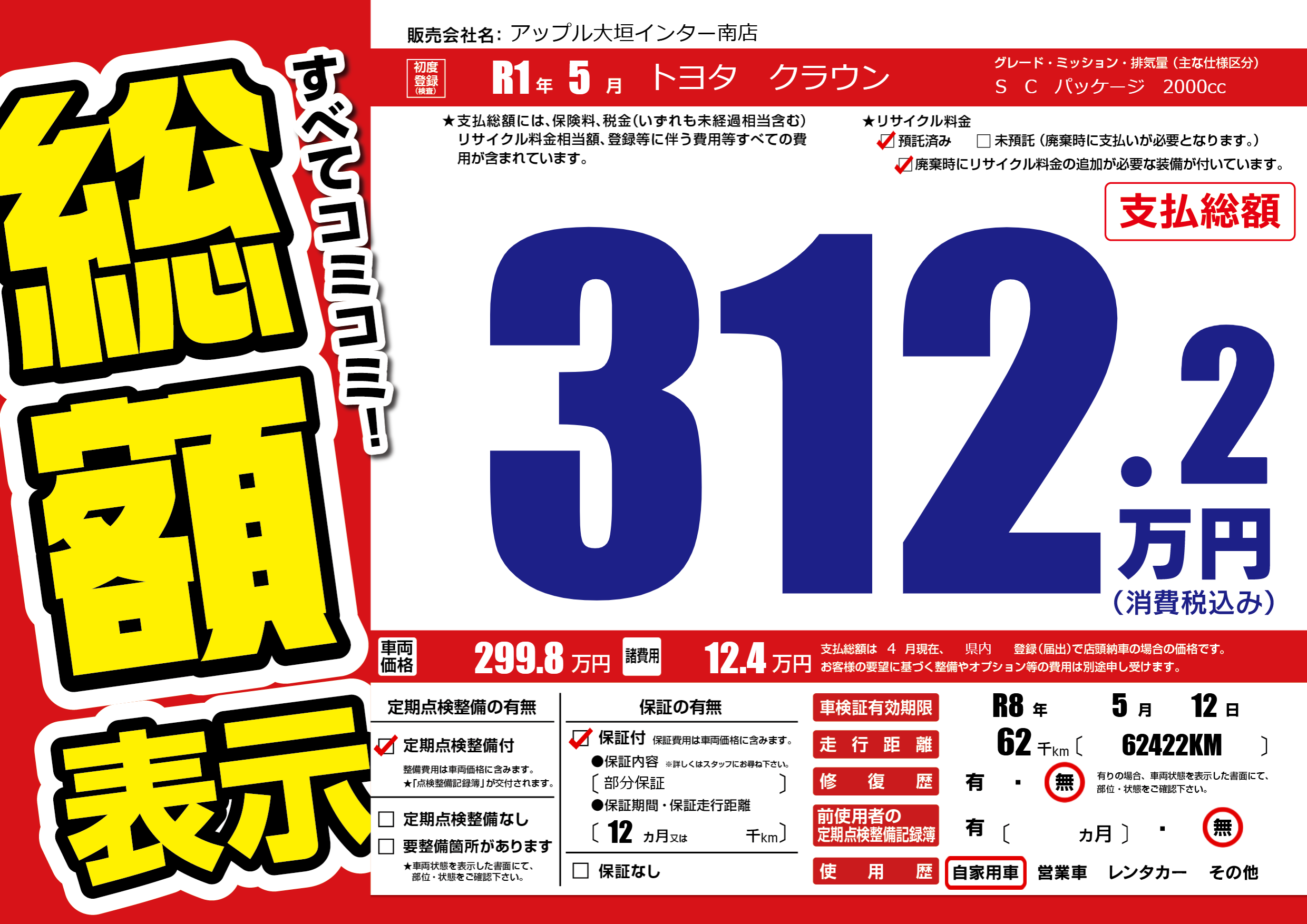| 車名 | トヨタ クラウン | グレード ミッション 排気量 |