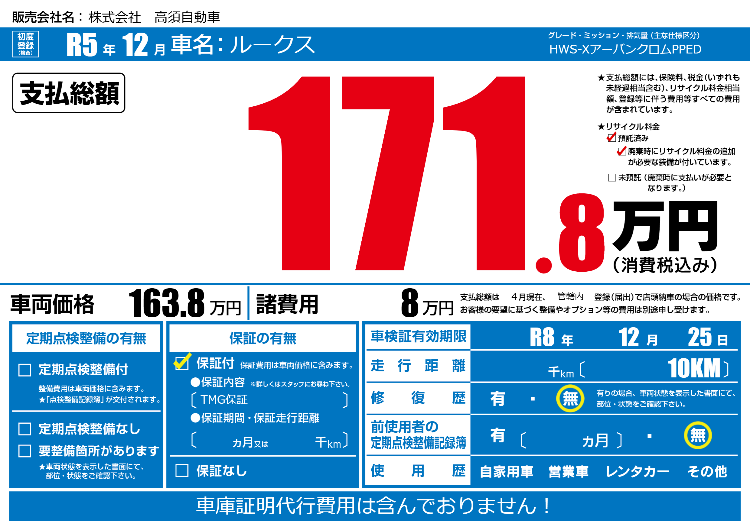なし | 車検制限 | R8年12月25月 |