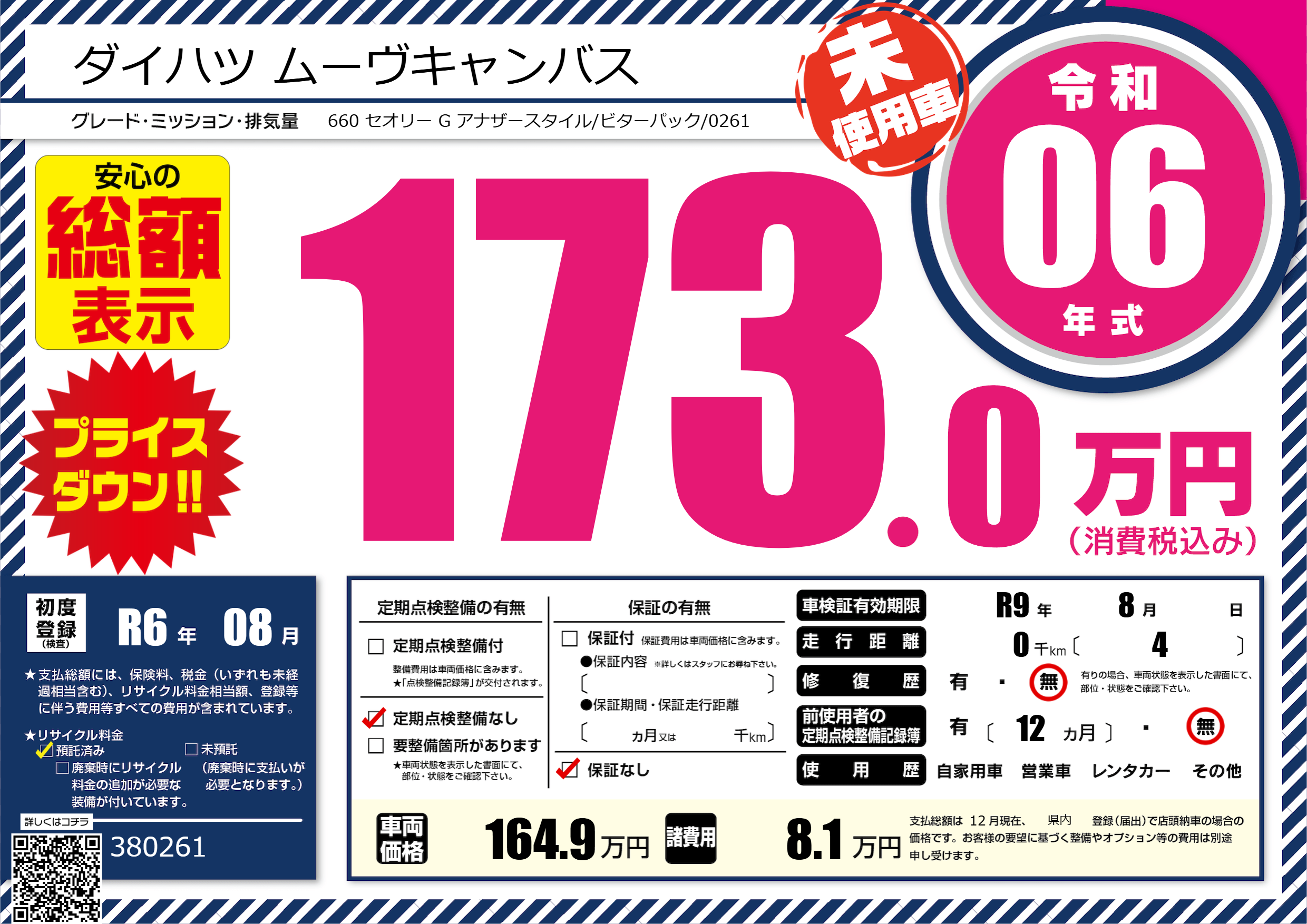 なし | 車検制限 | R9年8月---月 |