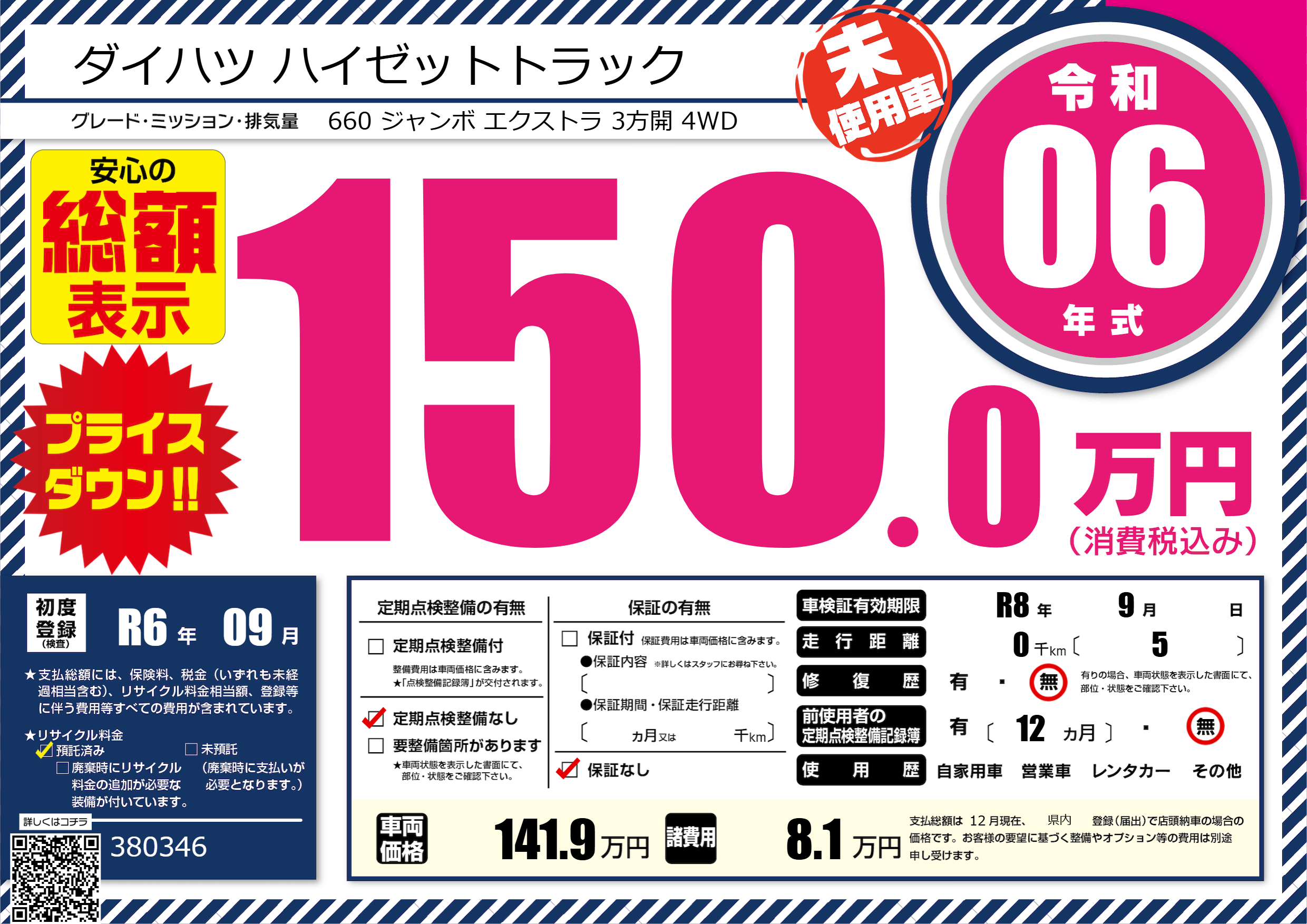 なし | 車検制限 | R8年9月---月 |