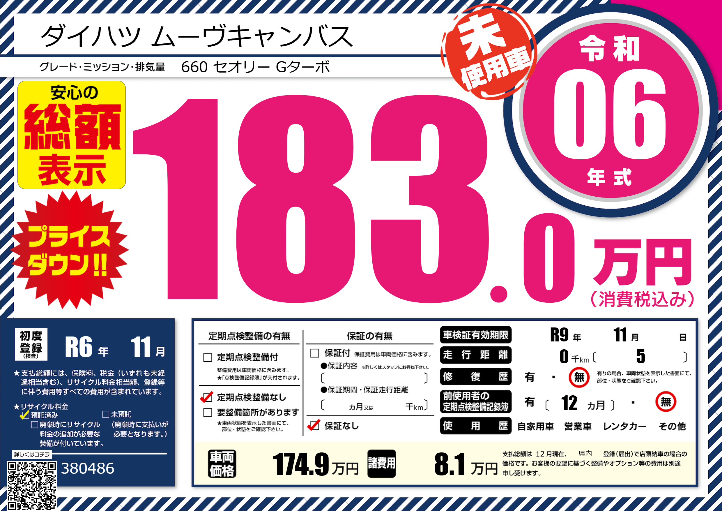 | 走行キロ | - | 初年度登録 | R6年11月 |