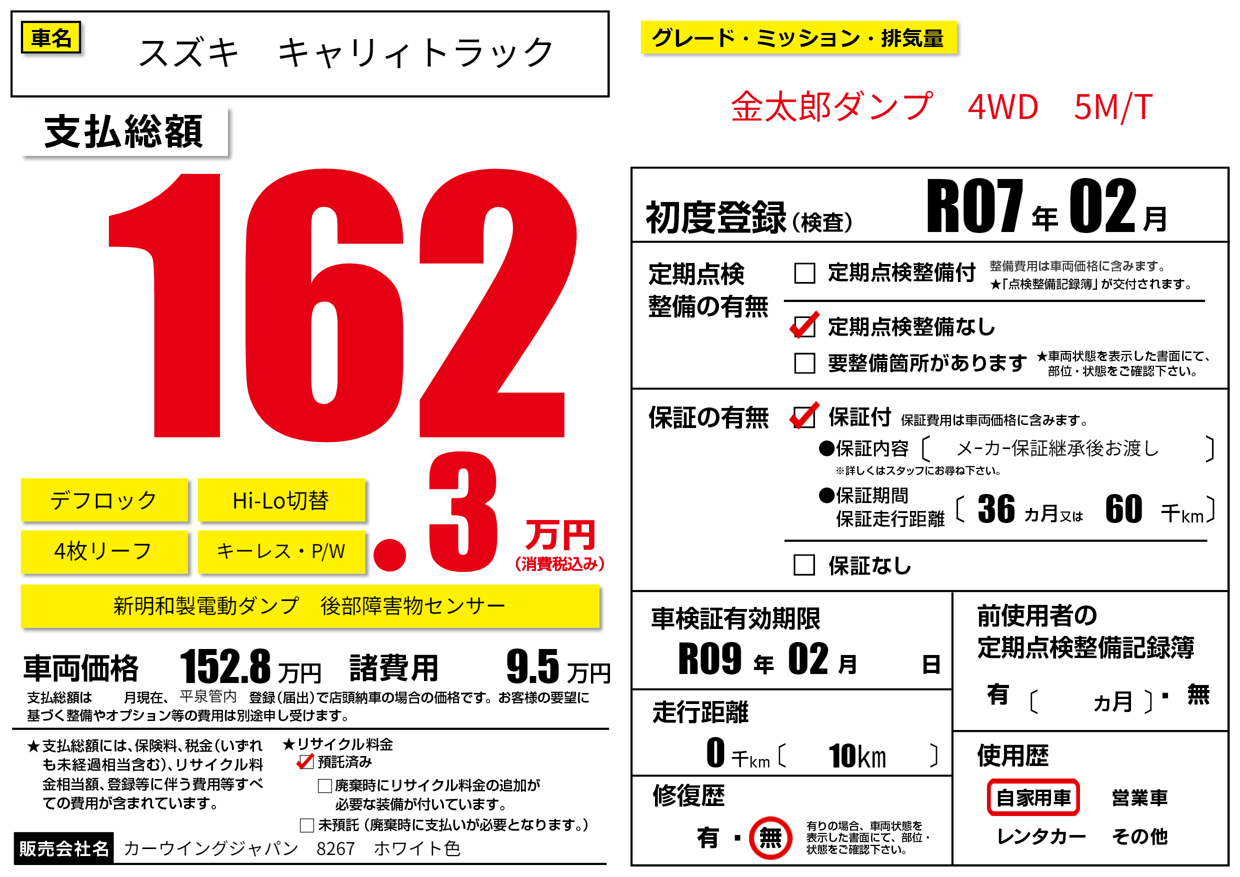 なし | 車検制限 | R09年02月---月 |