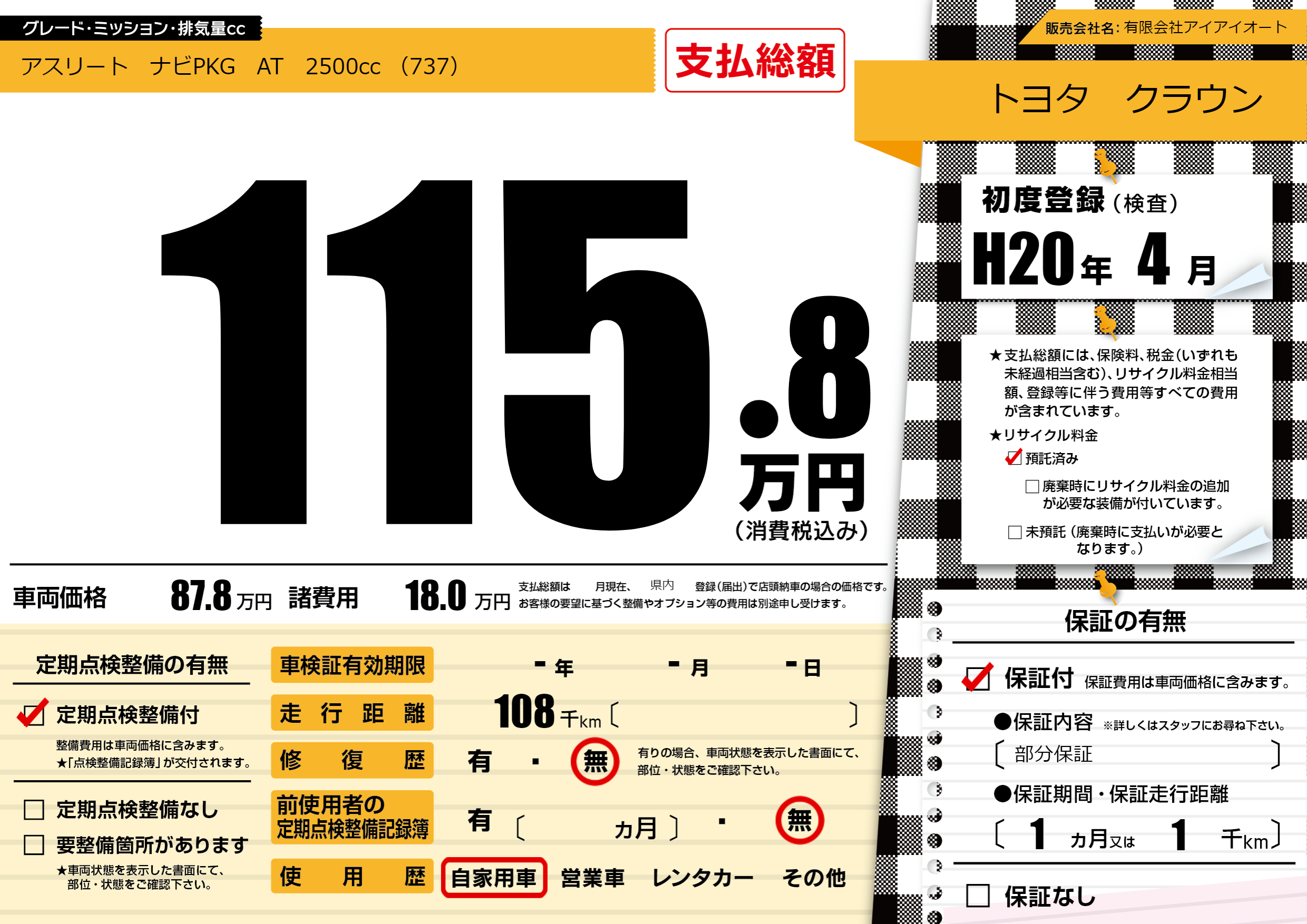 | 車検制限 | -年 -月 -日 | ||